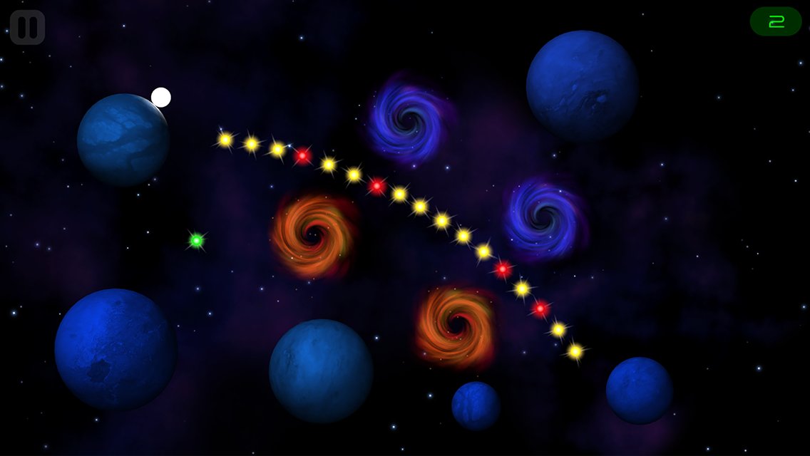 60 уровней разделённых на 5 этапов позволят надолго занять ваши мысли. Черные дыры и другие космические объекты внесут в разнообразие в игровой процесс.