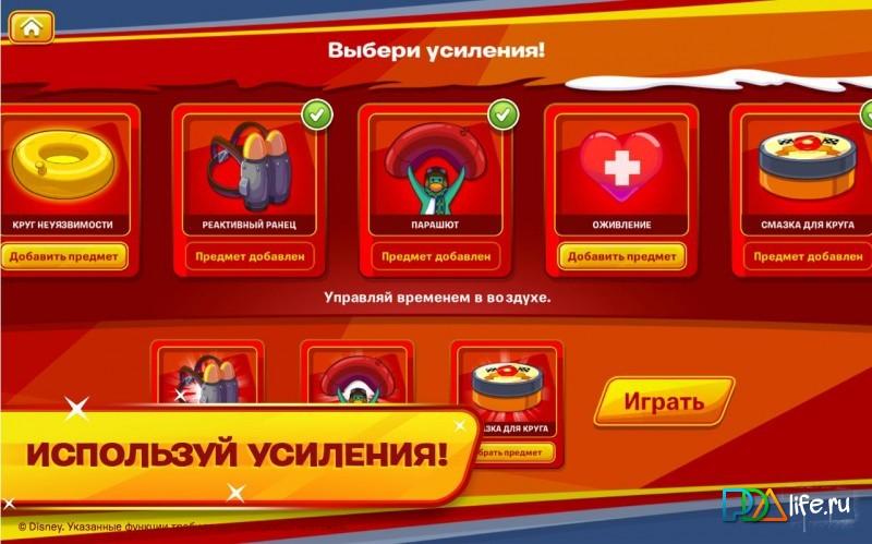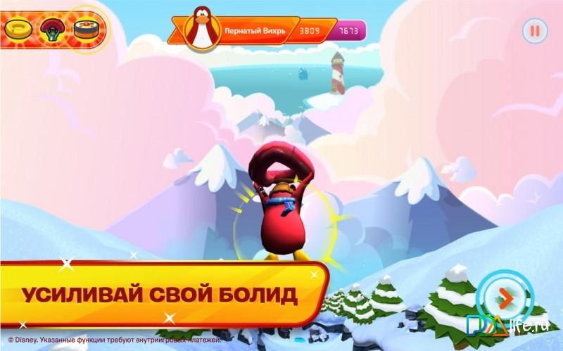 Клуб пингвинов игра для детей от студии Disney совсем недавно появившиеся в Play Market, но благодаря забавным персонажам, яркой графике, увлекательному геймплею и полной поддержке русского языка завоевавшая огромную популярность. И вот разработчики решили порадовать нас продолжением серии, выпустив игру под названием Гонки на санках. На этот раз студия Дисней подарила нам отличный ранер с классической игровой механикой и уже так полюбившимися персонажами. И так выбрав героя и средство передвижения, например надувной круг или сани, отправляйтесь в бесконечный спуск с Высочайшей горы. Как и во всех играх этого жанра ваша задача преодолеть максимальное расстояние уклоняясь от препятствий и собирая бонусы. Для облегчения выполнения задачи вы сможете приобрести массу улучшений и дополнений.
