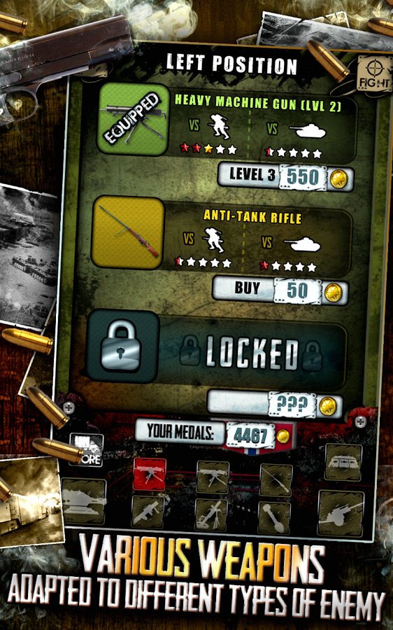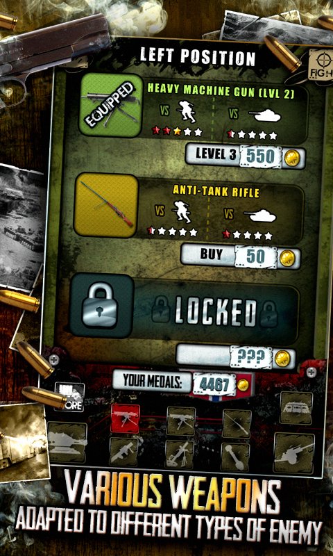 Defense 39 - События разворачиваются во времена второй мировой войны, когда уже погибло очень много людей. И вот война дошла и до вашей страны. Защищайте свою страну, свои территории, от фашистской армии и техники, и не давайте врагам приблизится к вам. Вы укрылись в неприступном ДОТе, который под завязку набит всеми возможными орудиями. Пулемёты, автоматы, ракеты и многое другое, а самое главное, что управлять всем этим будете именно вы! У вас будет возможность после каждой волны пополнить боеприпасы различными видами оружия. Вам это очень пригодится, когда на вас пойдут танки вместо пехоты...