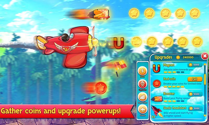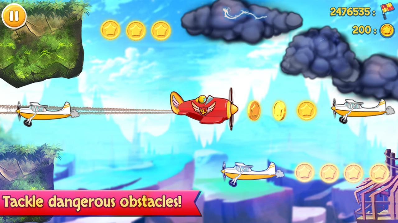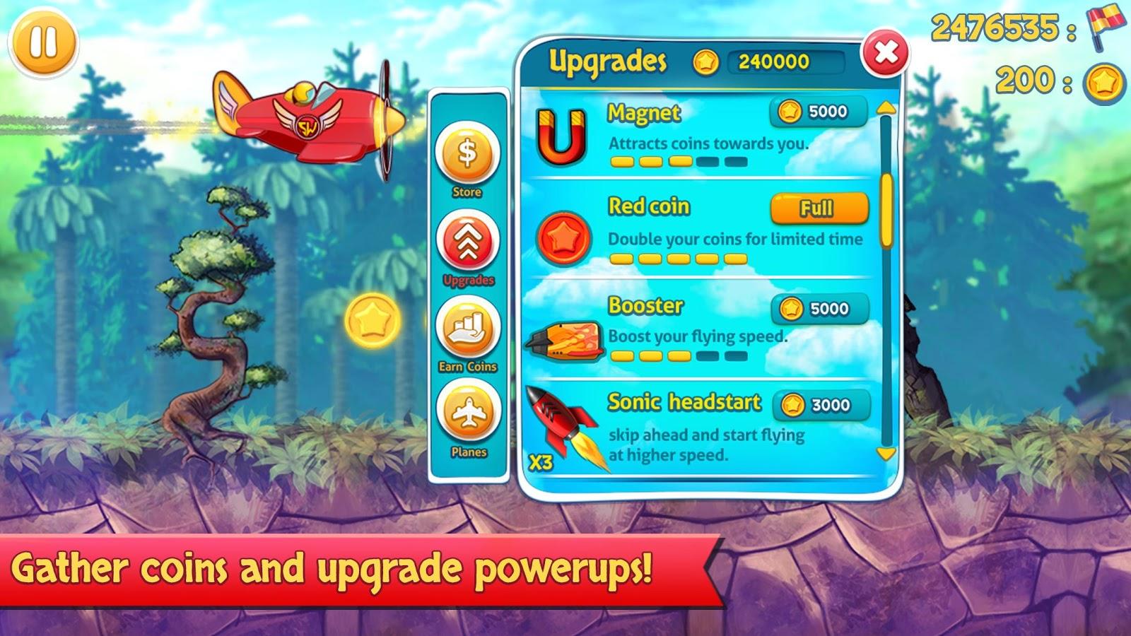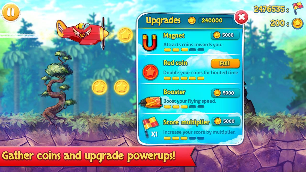 Игра относится к жанру горизонтальных ранеров с бесконечным геймплеем и с обязательным для проектов подобного толка собиранием монеток. Которые просто необходимо тратить на апгрейд вашего летательного аппарата и покупку крайне полезных бонусов, иначе далеко вы не продвинетесь. Малейшая ошибка или секунда промедления станет роковой для жизни нашего лётчика.