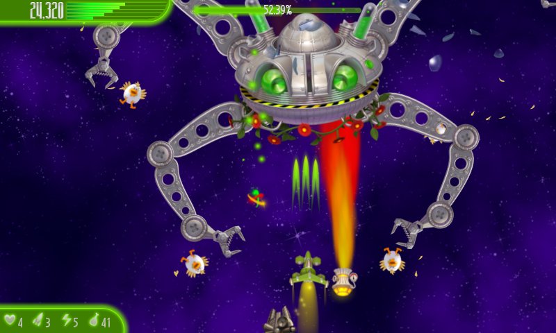 Chicken Invaders 4 Easter – remember the day of the invasion. The memories are even warmer deep inside. All clear - this is revenge for delicious spicy wings, which we so wonderfully know how to cook. They came without warning, their ruffled feathers covered the sun... the Invasion of the chickens has begun, they will seek revenge on all mankind for the oppression, dismemberment and deep-fried their younger counterparts, and for the exhumation and absorption of the bones of dogs they are willing to incinerate the entire planet. Three previous invasion was repulsed, this time I m going to send chickens back into their lair and then go into your favorite cafe and enjoy the taste of a double chicken-Burger with crispy chicken wings eating and drinking sweet soda.
