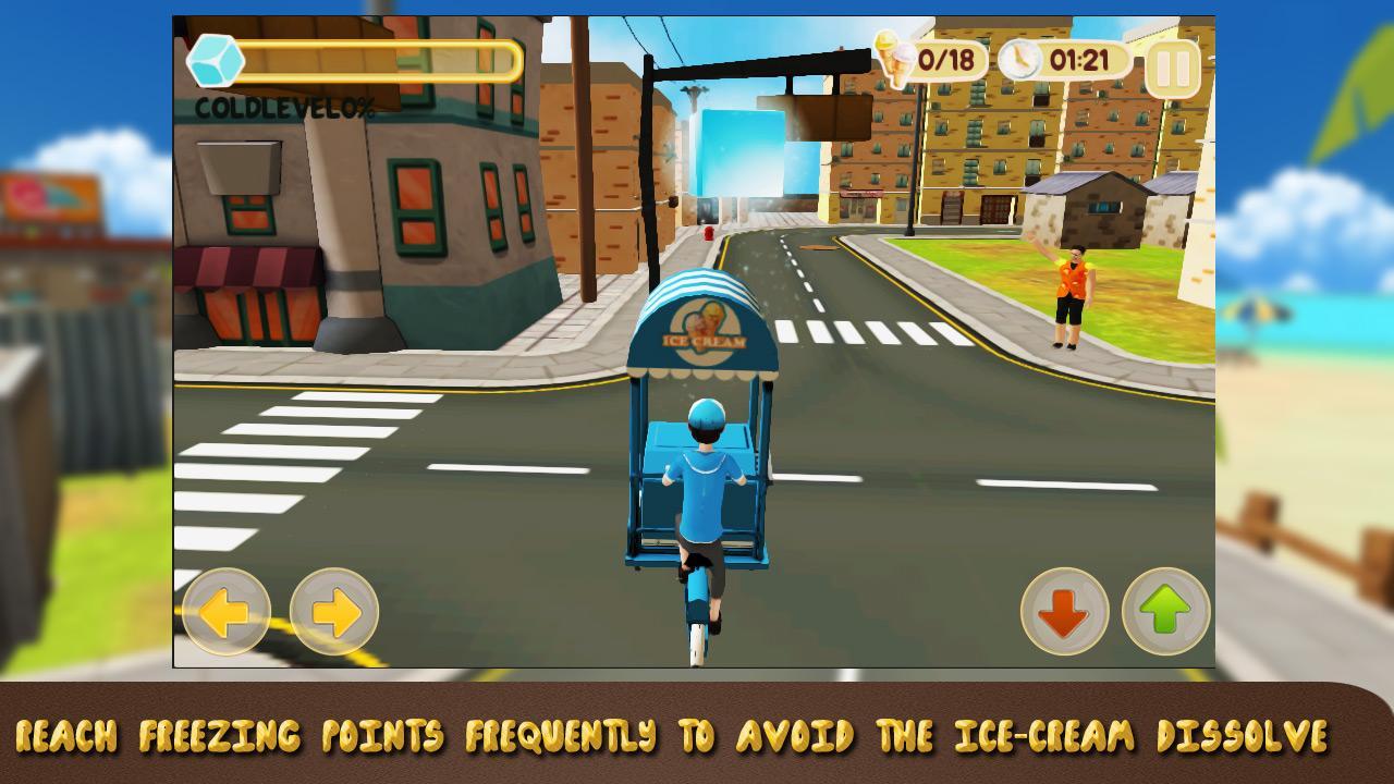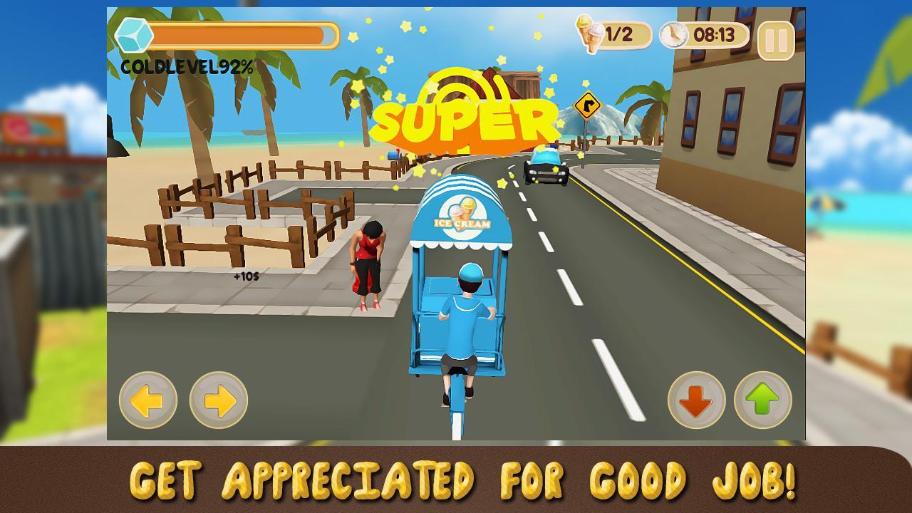 Beach Ice Cream Delivery - a rather unusual game with colorful graphics and original vehicles. And that you have to sit behind the wheel razvozyaschy ice cream tricycle and the free "flight" to travel around the city. But you can not just go in the box because your tricycle full of ice cream which quickly hides, and you also need to sell the goods. So pick up speed, racing through the streets in search of customers, because of how much it will be a good day depends on how much money you will earn. On the obtained reward, you can not only improve your tricycle, but also to buy new, good selection of vehicles is quite rich. Flying through the city streets be careful not to forget about other members of the movement, otherwise the risk of accident and lose all the goods. It is worth noting a good three-dimensional graphics that will complement a good impression of the game.