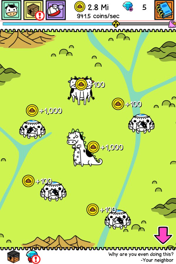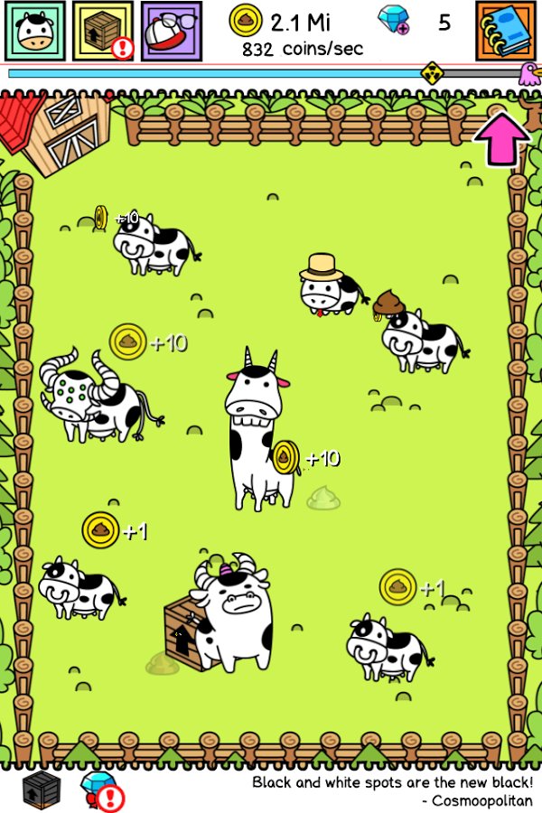 Cow Evolution - an exciting arcade game offering a cross between Alpaca Evolution and 2048 as well as with elements of the clicker. So, have a small farm with cows, as you know, in addition to the milk cows "produce" the manure, and the manure well paid, the manure will be your primary source of income. The money you will be able to buy a few head of cattle, but that s not all. Again, it is no secret that cows have the ability to reproduce, here is the surprise, because the process of evolution is not stopping, and with each new offspring, you will receive all the more amazing individuals capable of producing more manure, and thus you will get more income.