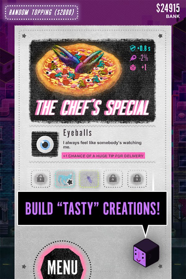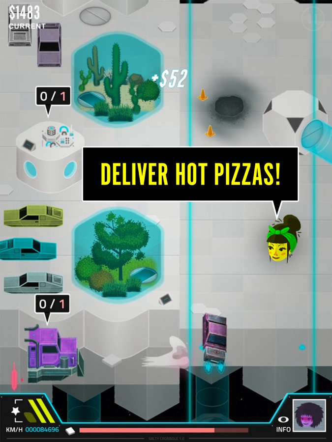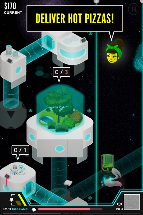Pie in the Sky – a game about space pizza delivery. Intergalactic pizza fighting for a place under the sun. From the courier depends on the speed of delivery and subsequently customer loyalty to your brand. The game is made in the genre of “Runner» - manage intergalactic machine and staraemsya the road is not pupates in trouble. Show all his skill, dexterity and attentiveness, not to get into an accident not to become a perpetrator of a road traffic accident. The machine can be improved and improve its performance. Pizza plays in the game is not a small role – more than 75 toppings you can choose for her.