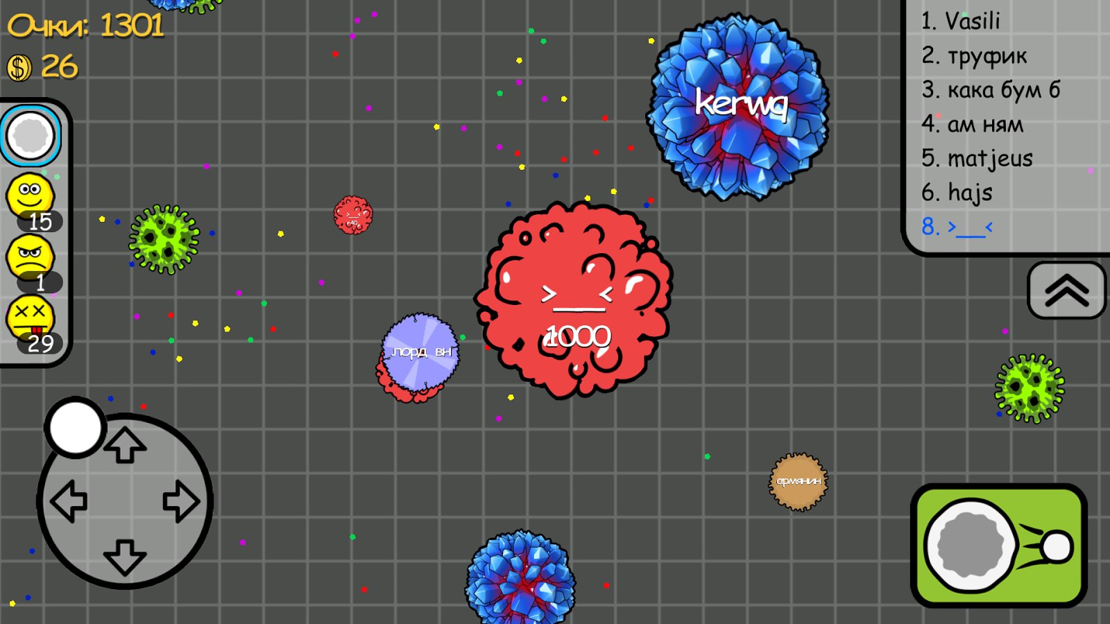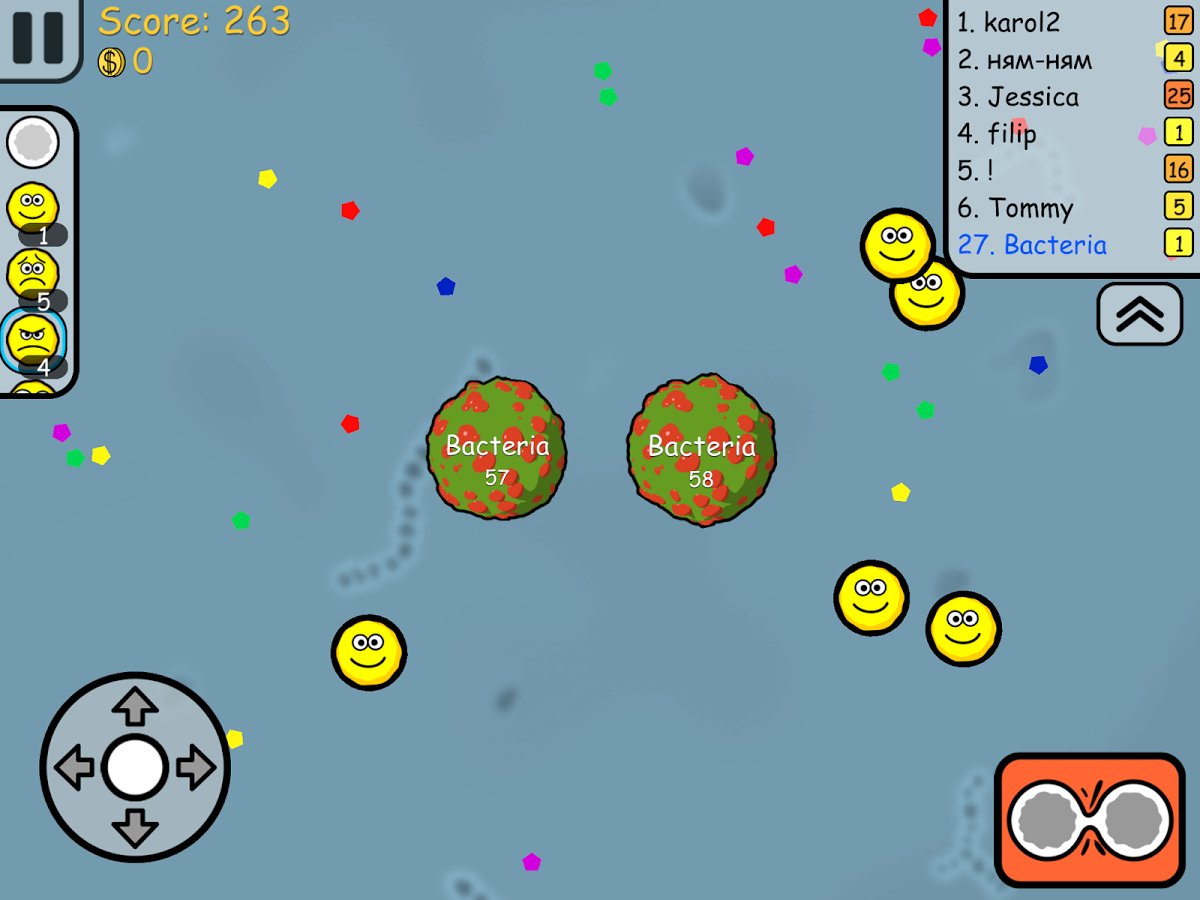 Gems smash - a dynamic arcade game with elements of tactical strategy, action is developing in the microcosm, the world of bacteria and germs. In General, the main objective of the game is quite simple, being a bacterium by eating the representatives of the microcosm is smaller. But in practice it is much harder, because the great bacteria will always be more, and the world is full of dangers. So stock up patience, use all their skill and fight. The gameplay combines the elements of arcade and strategy, because to successfully achieve the goal you have to plan your actions.