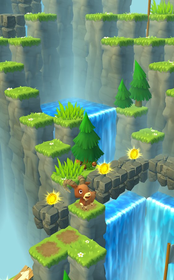 Mountain Goat Mountain - новая красочная игра от студии Zynga выпустившая целый ряд хитов в жанре головоломок, азартных игр и даже симуляторов и вот разработчики решили обратить свое внимание на создание аркады и стоит отметить что это у них вполне получилось. Сюжет игры закручивается вокруг горного козлика, представителя фауны которые большую часть жизни проводят на крутых горных склонах то и дело взбираясь по отвесным скалам на невероятные высоты. И ваш персонаж далеко не исключение, разработчики создали несколько десятков уровней, представляющих из себя локации с горными подъемами, ваша задача управляя козликом взобраться на самый верх, при этом избегая всевозможных препятствий и собирая бонусы.