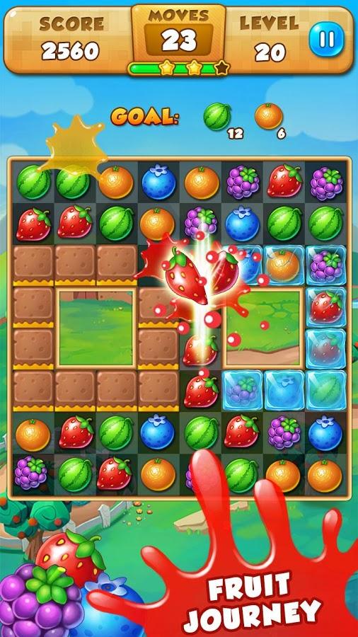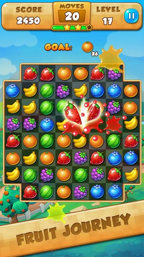 Fruit Journey – отправляйтесь в увлекательное путешествие по разнообразным мирам, наполненным сочными фруктами. Вашей главной задачей в игре составлять по три и более фруктов в ряд, меняя их метами и убирать их с поля. Чтобы получить как можно больше очков и бонусов составляйте более 3 фруктов в ряд и проделывайте комбо удары. Каждый новый уровень познакомит вас с интересными испытаниями, в виде необычных конфигураций полей и многочисленных фруктов на них. Старайтесь в этой игре пройти многочисленные уровни за минимально короткое время или количество ходов. Зарабатывает невероятные бонусы, которые помогут вам в игре и наслаждайтесь интересным и увлекательным процессом игры.