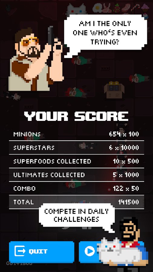 Shooting Stars! – веселая игра с прекрасным юмором на андроид, где вам предстоит уничтожать космических захватчиков с помощью лазерокотэ. Эта красивая аркадная стрелялка которая порадует вас неповторяющимися уровнями, разнообразным оружием и радужными лазерами. Злобные пришельцы решили напасть на вашу планету и вам во чтобы то не стало необходимо защитить ее. В этой игре вы познакомитесь с более 50 видами неповторимого оружия, меняя которое вы будете полностью менять свой стиль игры. Применяйте различные атаки, накапливайте бонусы и вступайте в бой с боссами такими как: Дастин Бимер, Пью дер Пай, Кенни Ист и другими. Соревнуйтесь с друзьями и ставьте свои рекорды в игре