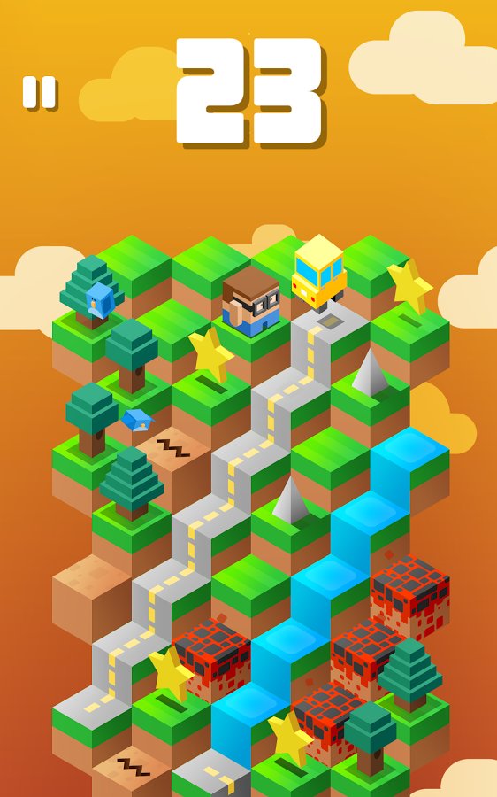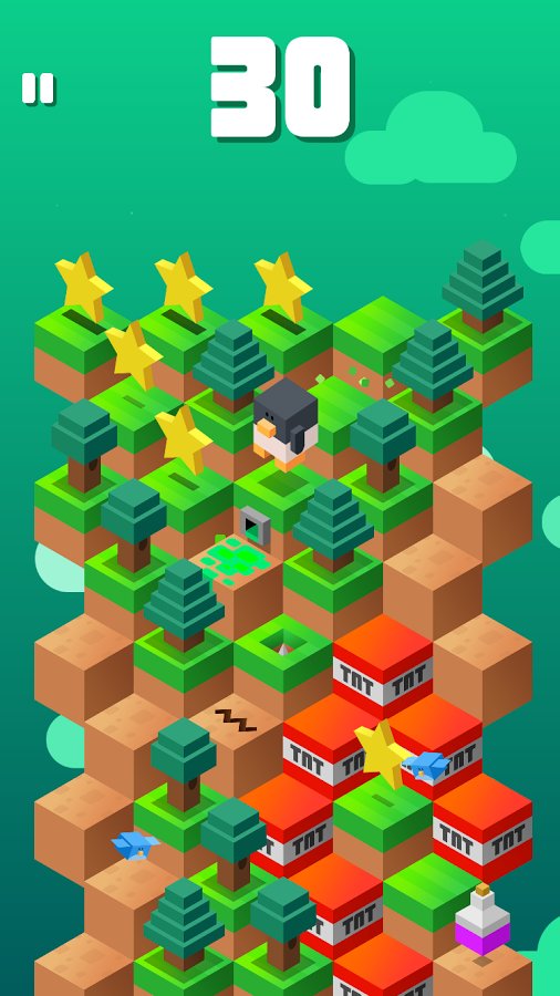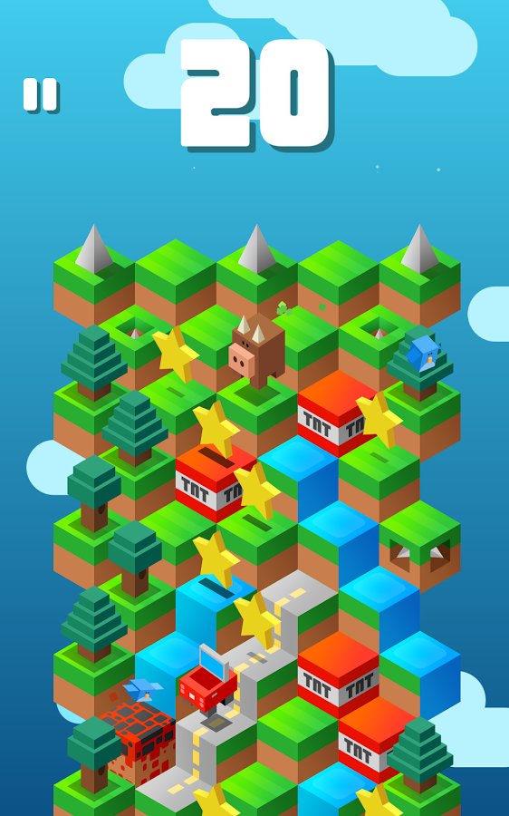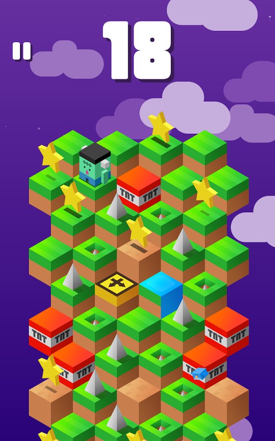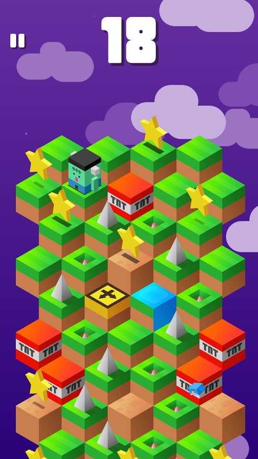 Down The Mountain - игра которую можно отнести к классическим представителям жанра тайм-киллеров. простой, по своей сути геймплей, сочетающий в себе элементы аркадной головоломки и ранера, не смотря на свою простоту достаточно сложен в освоении. Красочная графика в кубическом стиле, понятное управление, забавные персонажи. Другими словами Down The Mountain направлена на то чтобы игрок смог скоротать несколько свободных минут с максимальным удовольствием. Сама игровая механика довольно проста, ваша задача управляя героем спуститься с огромной кубической горы, перепрыгивая с блока на блок. Но на деле оказывается все сложней, на вашем пути встретится огромное количество всевозможных препятствий. Помимо сложностей разработчики приготовили и ряд приятных сюрпризов, бонусов и улучшений. Всего в игре более 200 уровней и 60 персонажей.