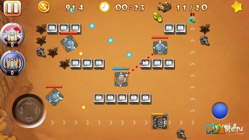 Tank War - Battle City – защитите свою базу от натиска врагов в этой увлекательной игре на андроид. В этой игре вы будете управлять современным танком, и защищать свою базу от армии противников. Ваши враги находятся в верней части экрана, обстреливайте их с помощью мощного оружия и делайте все возможное, чтобы не погибнуть. Вашей задачей будет уничтожить 20 танков противника на каждом уровне, сложность состоит в том, что жизней у вас ограничено, а врагов очень много и они все рвутся в бой. Совершайте умные маневры, прячьтесь за укрытиями и покажите все свои навыки планирования и тактики. Применяйте оружие для уничтожения вражеских укрытий и собирайте приятные бонусы, разбросанные по всему полю.