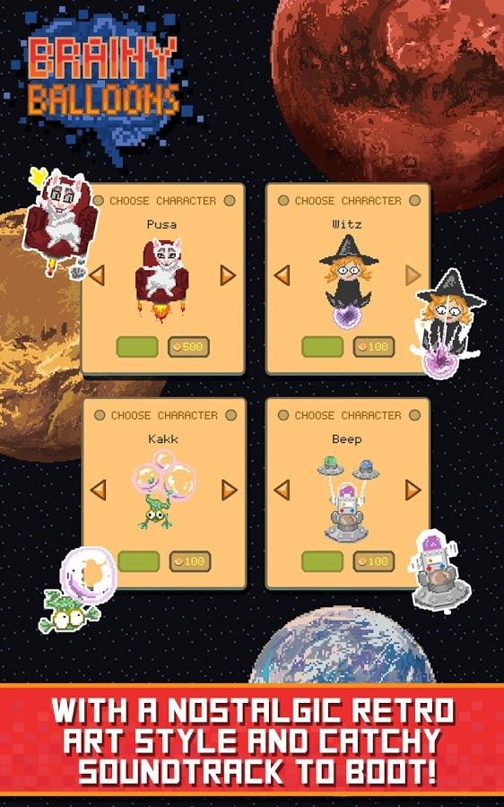 Brainy Balloons - игра сочетающая в себе элементы ранера и интеллектуальной викторины. Дело в том что пиксельный мир в котором живет ваш персонаж под угрозой затопления и единственный способ спастись от постоянно поднимающегося уровня воды это забраться повыше. Наш герой взяв в руки воздушные шары начал свое восхождение, но для того чтобы подниматься выше уму необходимо отвечать на всевозможные вопросы, о деталях сюжетной сюжетной линии разработчики умолчали и видимо оставили этот момент додумывать игрокам. Вопросы задаваемые герою из различных сфер жизни начиная от истории и заканчивая поп - культурой. Конечно же не обошлось и без элементов развития за достижение определенных высот вы будете получать призы в том числе возможность разблокировать дополнительных героев.
