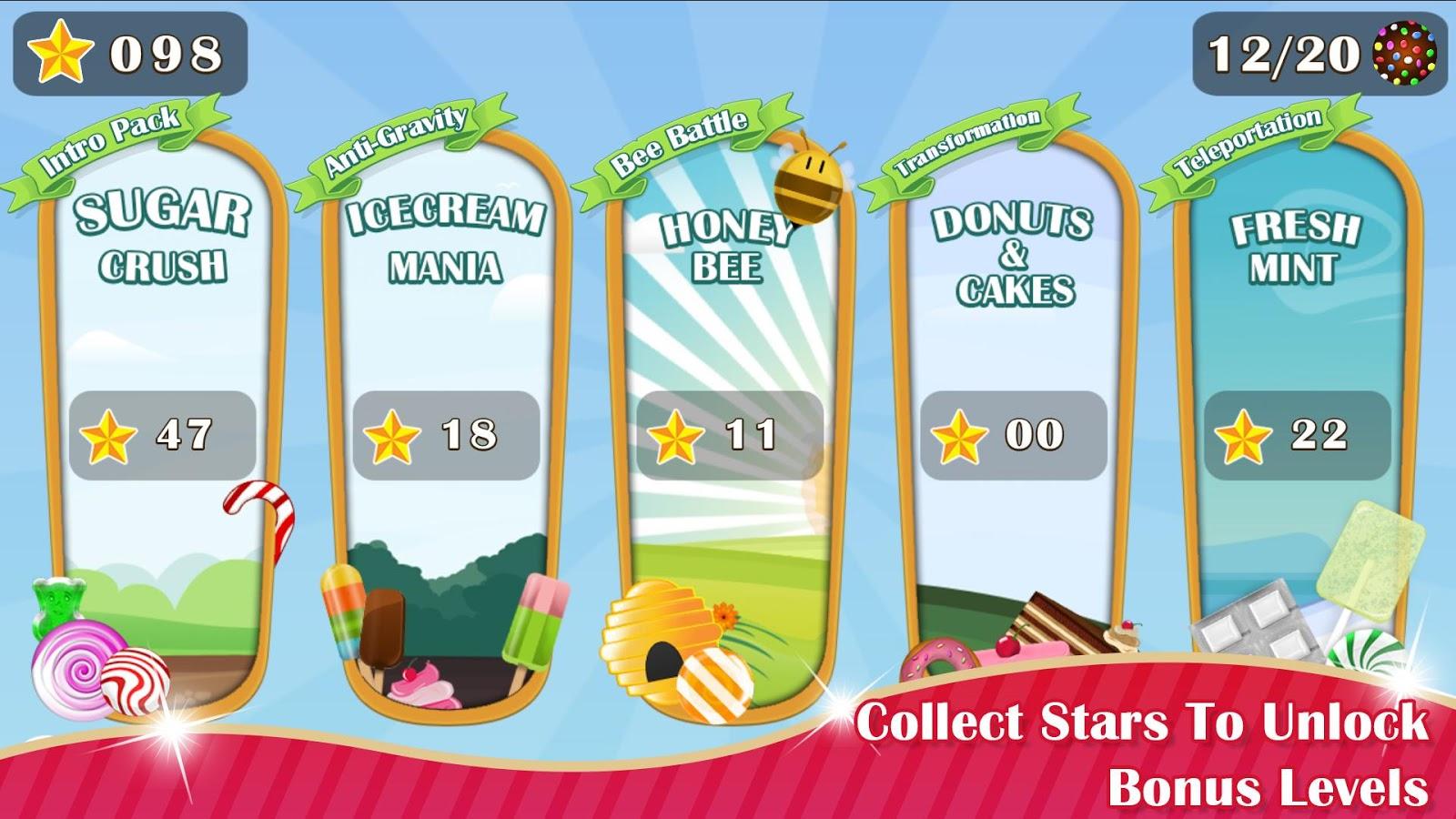 Candy Bang Mania – сладкая игра на андроид, в которой вам предстоит провести конфету по различным уровням. В этой игре вы попадет в мир полный сладостей и вкусняшек, где вам необходимо использовать различные приспособления и взрывы, чтобы провести конфету через все ловушки и опасные уровни. Применяйте свойства конфеты цепляться за стенки, платформы и другие объекты, чтобы быстрее закончить уровень и открыть следующий не менее интересный. Для того чтобы заполучить как можно больше достижений и бонусов проходите уровень за минимальное количество ходов и движений, избегая все преграды. Впереди вас ждет более 100 уровней на пяти различных планетах и легкое управление с помощью одного прикосновения.