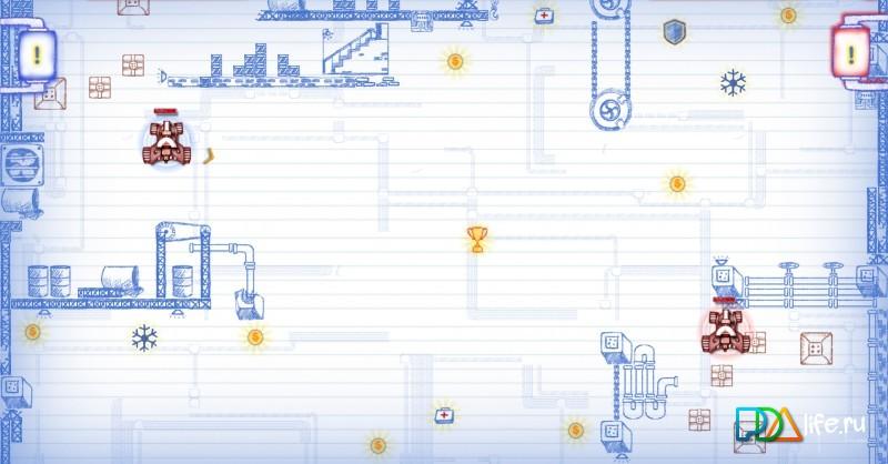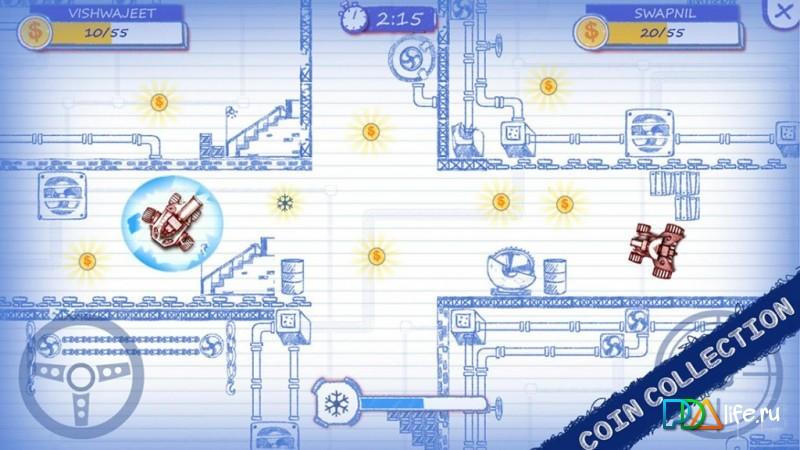 Scribbled Arena – PocketEd – кросс-платформер на андроид, где вы окажитесь в рисованном мире на бумаге. Это онлайн игра, в которую вы сможете играть со своими друзьями с facebook в режиме реального времени. Перемешайте свой танк по различным лабиринтам игры, в которых вас подстерегают различные вражеские танки и пушки. Уничтожайте их с помощью мощного оружия и собирайте нужные вам бонусы такие как: заморозка противника, щит на ваш танк, ускорение, капсула здоровья и мощные пули. Проверьте свои способности в одиночном режиме, незаметно проникая в базу врага и уничтожая ее, а затем бросайте вызов своим друзьям в режиме мультиплеер, сражаясь на арене. Получайте различные достижения и зарабатывайте баллы.