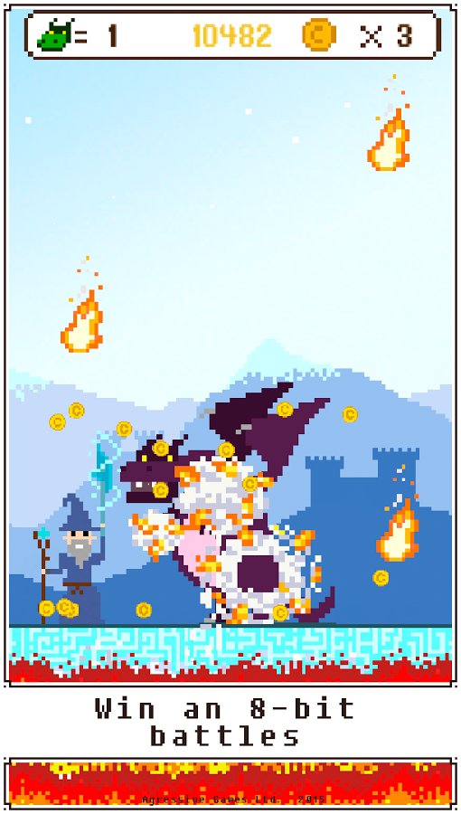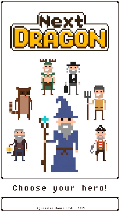 Next Dragon! – в настоящее время приходится БУМ пиксельных игр и молодая студия Pixel Division Ltd. с намекающим на пиксельность названием, также решила попробовать себя, на этом поприще. Игра представляет собой незатейливую аркаду выполненную в пиксельном ретро стиле. В игре вас необходимо сражаться с драконами различными героями. Убейте их как можно больше, но не забывайте что их огненное пламя и раскалённые огненные шары быстренько превратят вас в подобие поджаренного барбекю с румяной и хрустящей корочкой. Драконы похитили всех жителей вашей деревни, вам необходимо вызволить из с заточения. После того как вы спасли некоторых людей, они готовы продолжить c вами нелёгкий бой, идём в таверну и нанимаем ещё одного бесстрашного героя.