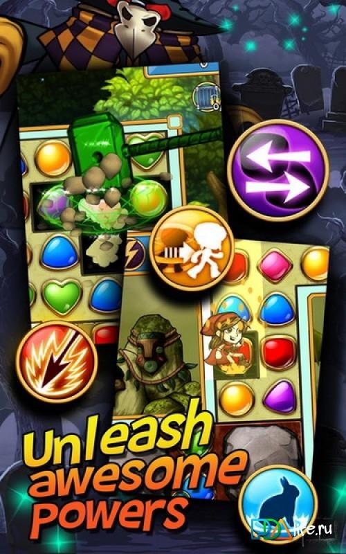 Rescue Quest - сделайте так чтобы драгоценные камни стали в одни ряд одного цвета. Присоединяйтесь к двум мастерам для эпических приключений через опасные территории. Густые леса, высокие горы, сильные боссы и многое другое ждёт вас в этой замечательной игре. Во время прохождения вам будут открываться новые возможности и умения, пользуйтесь ими с умом и вы обязательно. С помощью Мастера Turnspell, открывайте потрясающие заклинания и комбо, а также вызывайте невероятных магических существ.