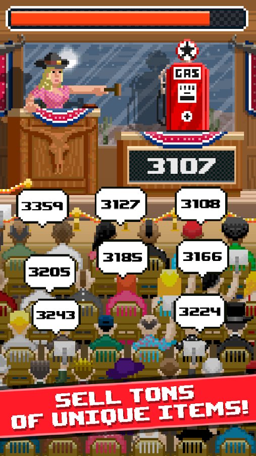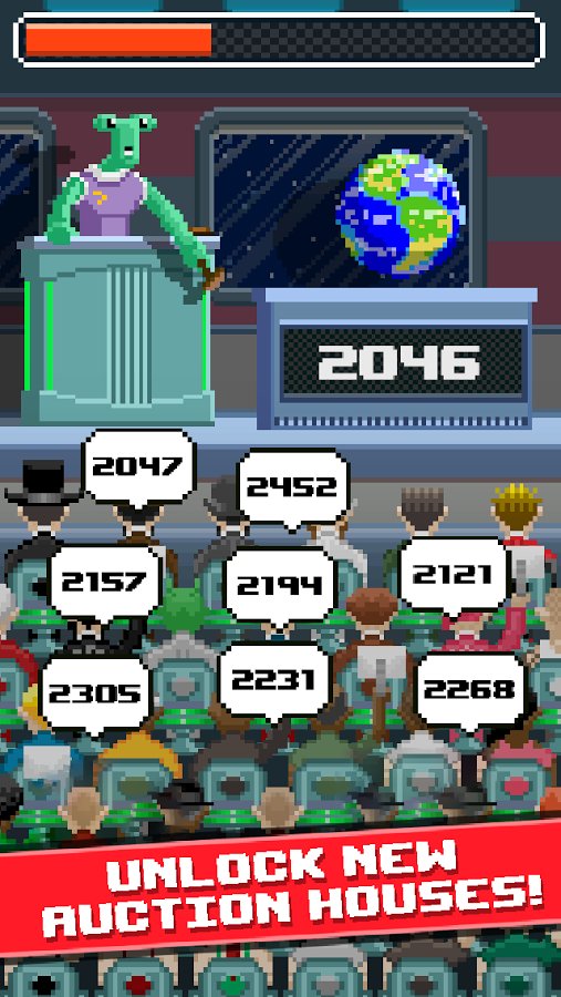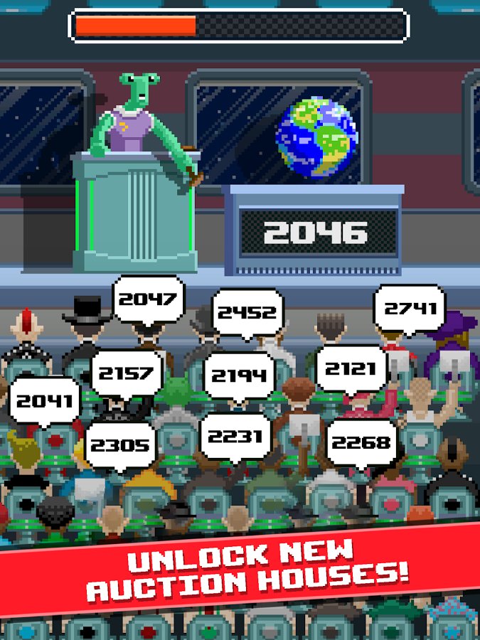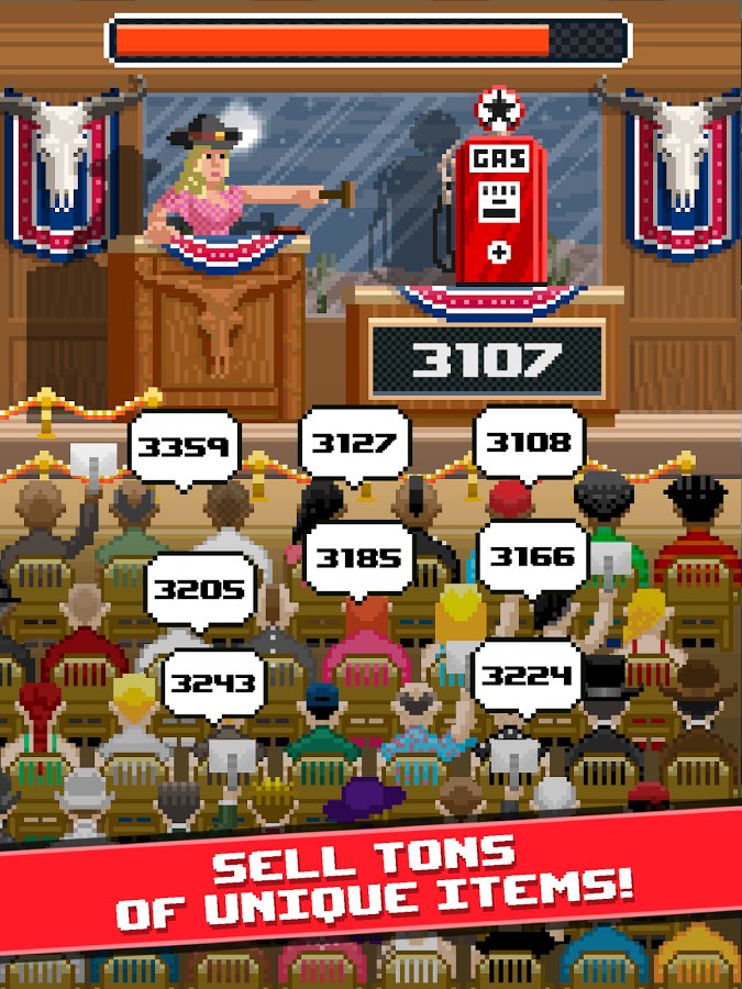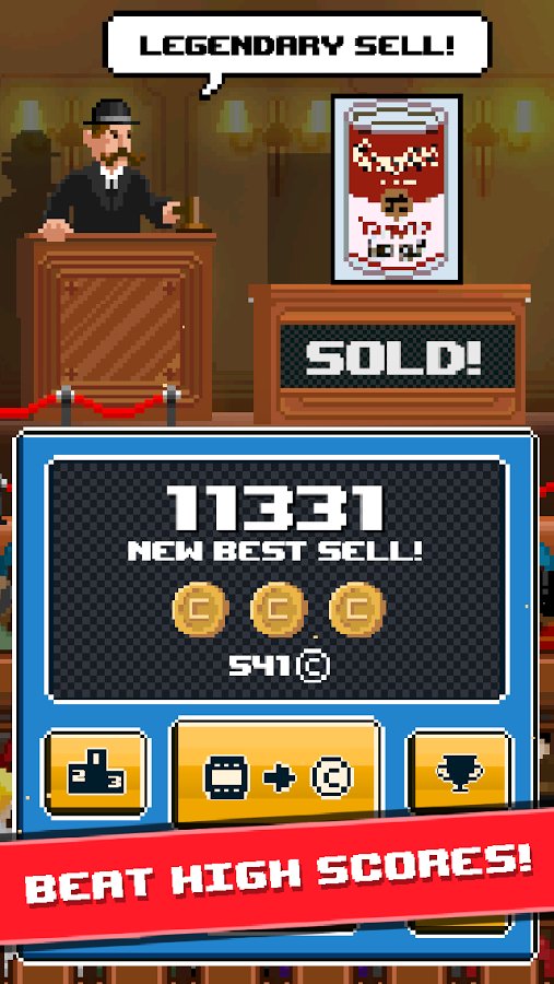 Auctioneer - a game which can be attributed to just the perfect time-killer. It is no secret that most games of this genre are of very poor quality this applies both to the performance of the game and to the gameplay, but the Auctioneer is clearly not one of them. Overall game mechanics Auctioneer for Android is a kind of mix between touch arcade and the clicker, what is nothing new, in the visual style the developers also did not have original choosing popular retro -style. But throughout the rest of the game is beyond praise, this time you do not have to breed cows or sheep, to kill hundreds of monsters or beasts that you had a chance to try their hand at the role of the owner of the auction. Sell for the highest price hundreds of rare and expensive items, the money improve your skills and buy new buildings.