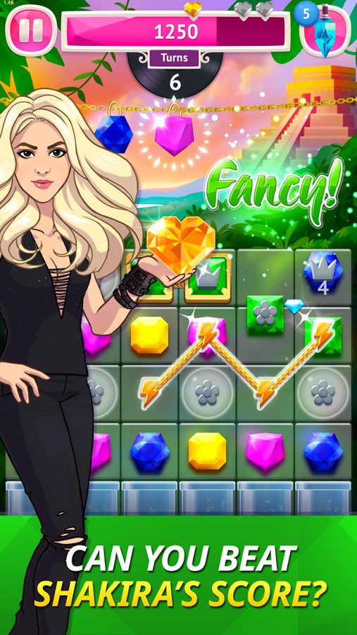 Love Rocks Shakira – puzzle game from the creators of Angry Birds together with the famous pop star Shakira. In this game you have to collect colored stones in long chains, create charms and score enough points to compete with the Shakira. Embark on an exciting journey around the world starting from Barcelona and ending with the Eldorado. Gather three or more same color crystals in a row and remove them from the field. The longer you have the number, the more points you earn. Open mystery chests, break the mirror and get valuable bonuses that will help you pass the level and get three stars.