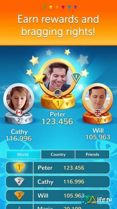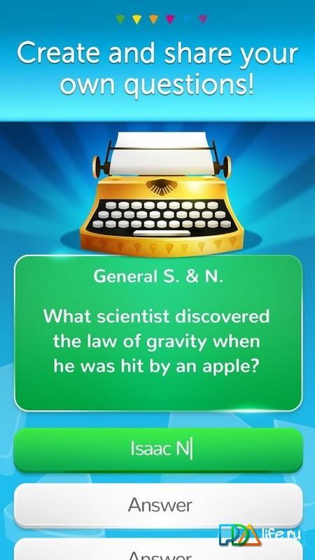 TRIVIAL PURSUIT & Friends – quiz on Android where you have to demonstrate your erudition and knowledge. In this game you will compete with friends or players from all over the world, answering questions from six different categories. Challenge your friends and show your great knowledge in different areas, responding correctly to questions. Take part in various competitions and promotions, collect reward achievements. Chat with other players in General chat and create complex questions for the quiz.