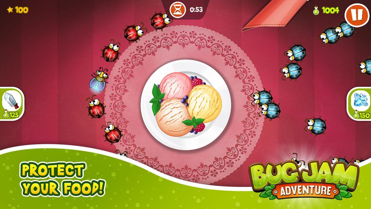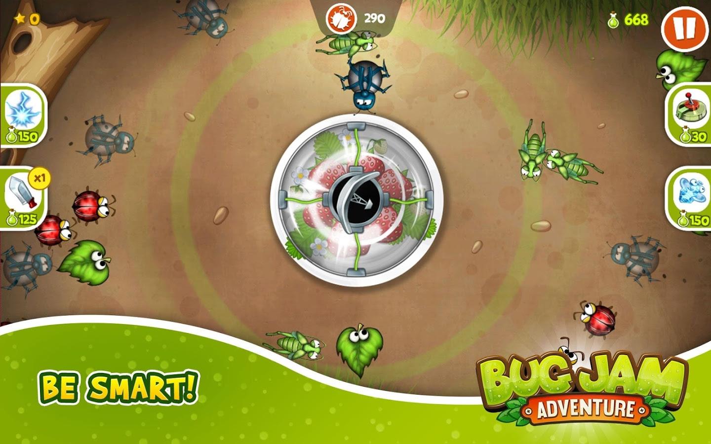 Bug Jam Adventure – your sweetness is attacked various beetles and caterpillars, let them fight back in this game for Android. In the center of the screen is a plate with cakes and sweets to them on all sides, creeping bugs, your task will be using touches on the screen don t let them eat your snacks. Crush insects and bugs with your finger and freeze them, destroy by fire and blow up bombs. Set your record in this game and enlist the help of frogs, which will destroy insects balls.