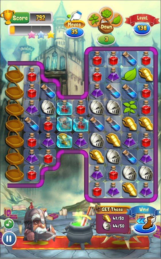 Magic Blender - You are the wizard who brews magic potion. This game is a series of 3 in a row. However, it has one special difference. If in most games of this genre, there is a limit on speed. There is a limit also on time, with very little. You will have to think very quickly. But solution must be not just fast but also very effective. The game is perfect, if you decide to pass the time. And also, will help to improve your reaction and speed of decision-making.