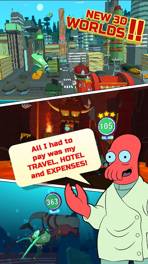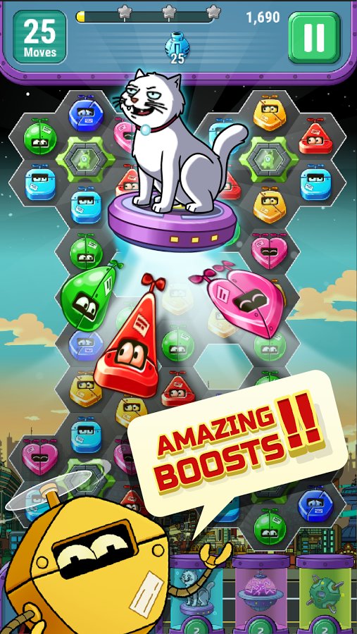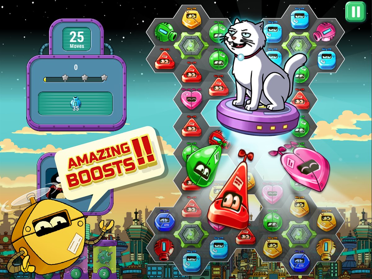 Futurama: Game of Drones – Professor Farnsworth then sends his brave team into a deadly journey. In this game you have to help the main heroes of the game to control the drone with a laser apparatus, which will require you full concentration and special attention. For this you need to collect four or more identical characters in a row and score enough points to strike. Do the assigned mission as fast as possible, using the unique abilities of each character and great bonuses. With each new level complexity of game will increase and you all will be more difficult to recruit a sufficient number of stars. Play and have pleasure of meeting your favorite heroes of the eponymous animated series.