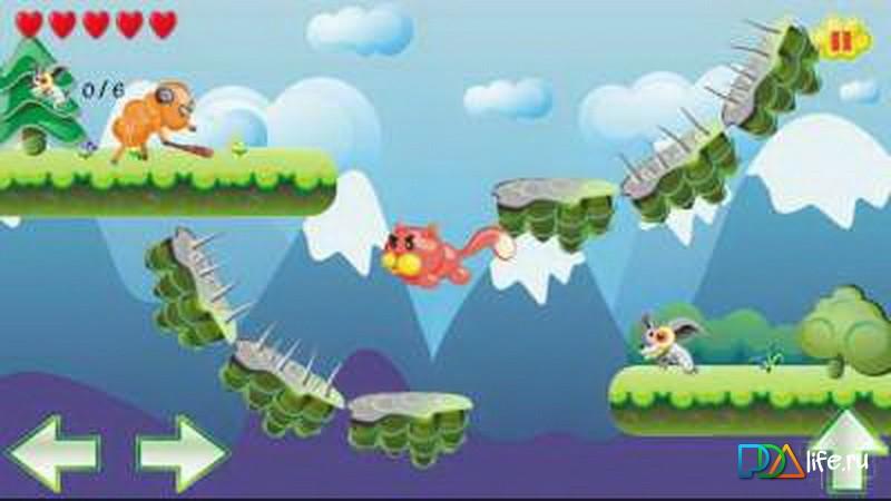 Buddy Cat – a fun platformer for Android, where you will find yourself in a colorful world and will help the cat to gather the animals. Our hero does not like other cats, it is characterized in that lives in the wild and is fighting with the enemies who want to destroy it. Take control of your air cat and go through dangerous levels filled with sharp spikes and enemies with pitchforks. Don t let an angry gardener to pierce you, otherwise you will die and begin the game again. Move through the levels and collect animals, this number of lives you have will increase. Become a true predator and open season on enemies.