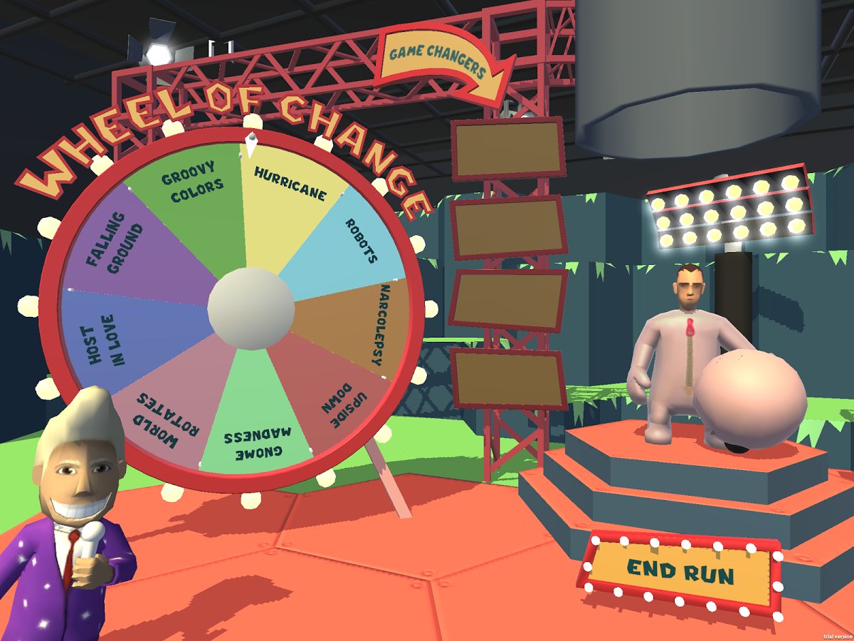 Game Changer – a game on Android where you get on a crazy TV show. Our hero in a ridiculous costume participates in a television show, where he will have to overcome a dangerous road and not to fall into the trap, to avoid all the obstacles and avoid encounters with enemies. The show s host turns the wheel of fortune, which lists various traps that fell obstacles are added to the field. Navigate through dangerous levels in the shortest time and help the main character games to win this race. With each new level the field will change and add new traps. This game players will appreciate the fascinating gameplay, high quality graphics and numerous obstacles and obstacles.