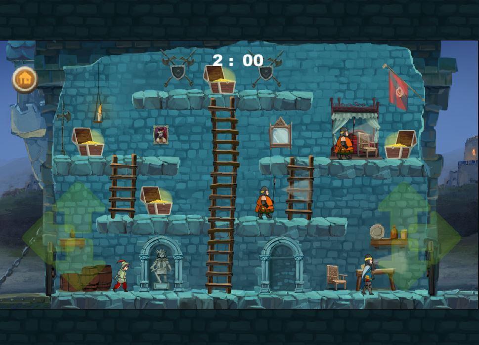 Robin Hood: Give and Take - a stealth arcade game in which you take on the role of a young Robin and so to speak go all the way from the beginning, the famous robber. The gameplay is quite clear, throughout the 20 levels you have to secretly drifting through the gloomy castle, hiding behind the curtains, chests, pillars, hiding in the niches, try to stay undetected and steal as many valuables. Also the game has an infinite mode in which you will be able to evaluate your hand fully.