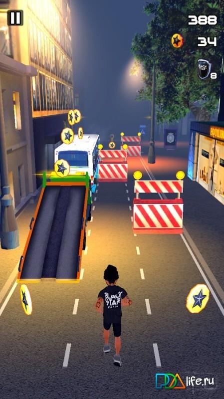 Black Star Runner – Runner for Android, where you take control of one of the famous rappers. Run through the huge Moscow and go around all the obstacles on your way. Choose your character from numerous represented in-game characters such as: TIMATI, L one, Yegor kreed, Natan, ILO, Kristina Si, MC Doni and Philchansky to start your journey through the night streets. Run, jump and Dodge obstacles await you on each ball. Move through the streets and down into the subway, beware of foot and buses and reckless drivers. Collect coins along the way and get your rapper new costumes and accessories. Use various bonuses and two times faster overcome the track. Play with friends and compete with them for top place on the leaderboard.