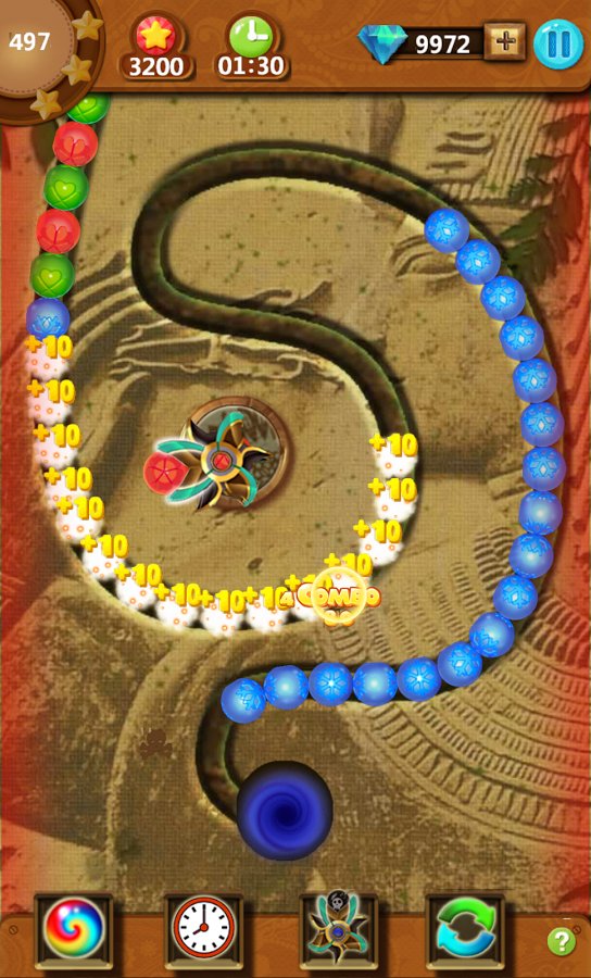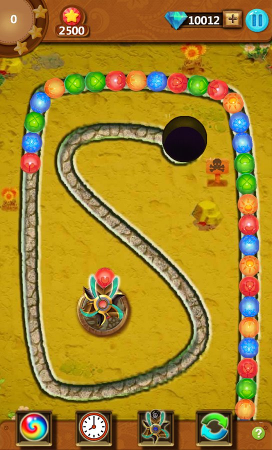 Mazu Ball – an exciting game for Android made in the likeness of Zuma, where you will find yourself in ancient Egypt. In this game you have to shoot colored balls from a cannon and try to match three or more balls. Train your powers of observation and shoot the balls in the cluster of same colored balloons and blow them up, traveling through various levels of the game. The goal is simple you need to blow up all the balls on the level before they reach the black hole. Use different boosts and bonuses and thus slow down or move in the opposite direction of the chain. Set your speed record, and climb to the top of the leaderboard.