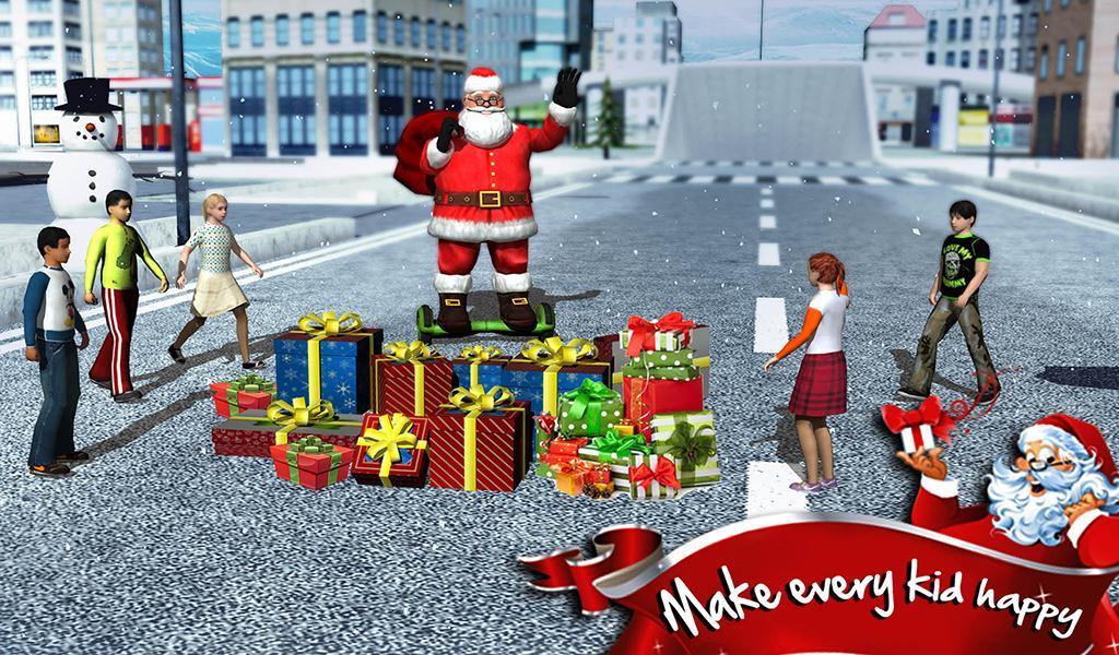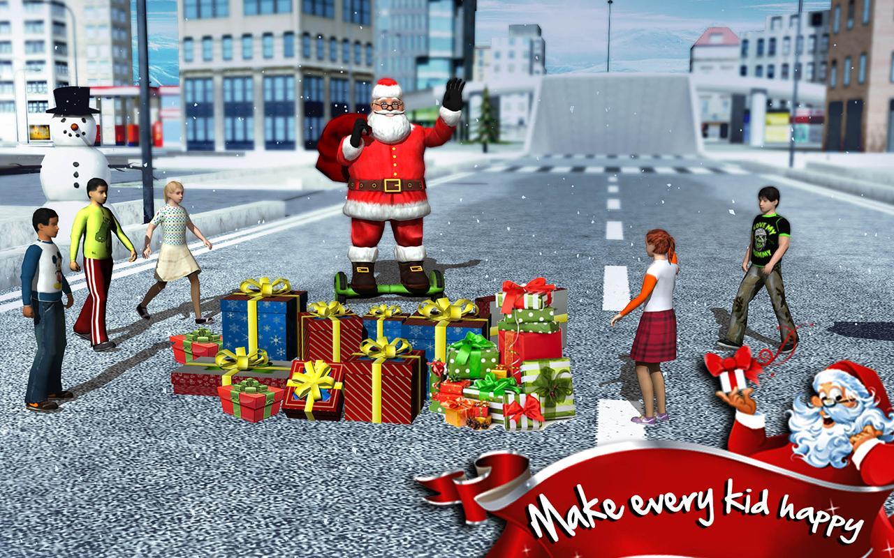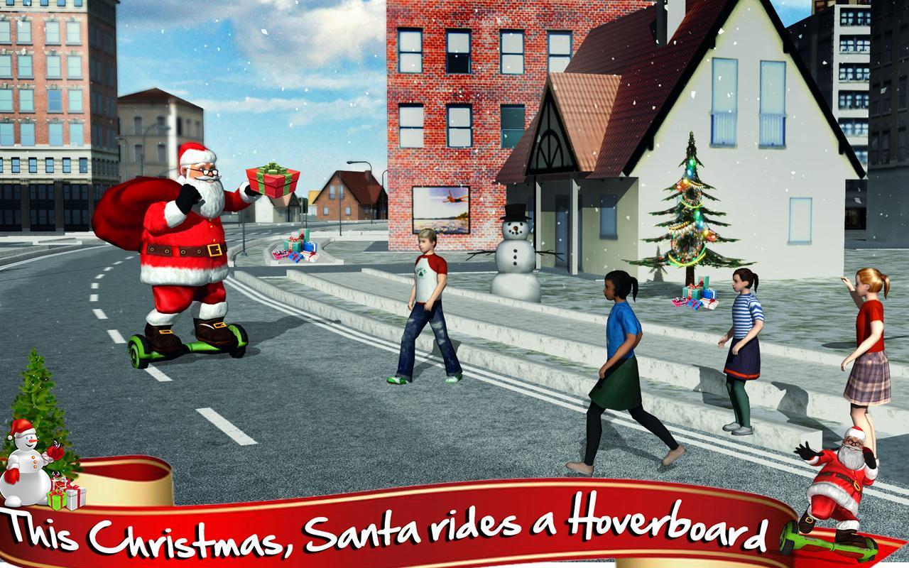Hoverboard Rider 3D Santa racing game for Android, which will give you a festive mood where you have to help Santa to breed gifts to children. Our hero doesn t ride in a sleigh with reindeer, he oversees the technology and now he has to master gyrometer. Control Santa and guide him through all the streets of a huge city for it to be pleased with each child as a gift. Hand out gifts to all the counter children and give them a good mood. Keep an eye on the map for your movement and avoid collisions with various obstacles and barriers. The game will delight you with excellent physics and convenient control.