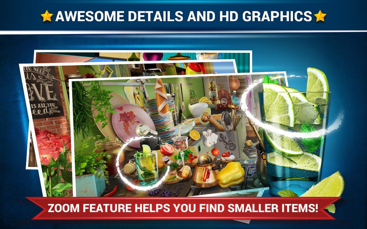 Hidden Object - Messy Kitchen – hidden objects on a variety of cluttered kitchens. In this game you will travel through various kitchens, the striking feature of which will be the clutter of their desks a variety of products, ready meals and snacks, your task is to find among all this number of products the items you need. Try to find the items you need at the same time, carefully inspecting the room, because objects can be hidden. In difficult situations use the tips. Collect three stars on each level and enjoy excellent graphics and accurate portrayal of all the details.