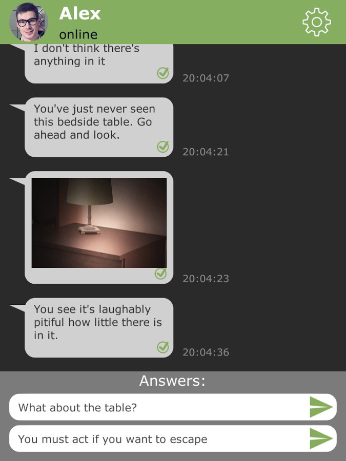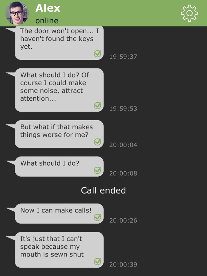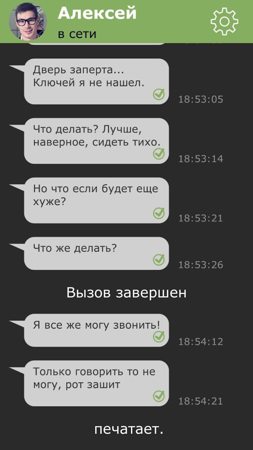 Hotel Silence / Silence Hotel is an Interesting game which is made in the style of a text adventure. The genre of the game you are undoubtedly familiar games: Lifeline and The Martian. But the story of the game is not similar to the previous one. You get a message from a man named Alex. On the first minute you know that Alex sewn mouth and cut off one toe. Where is it located? Who did this? and most importantly, why?! All that you will need to find out. But be careful, any of your messages can affect the course of events and on the life of Alex...