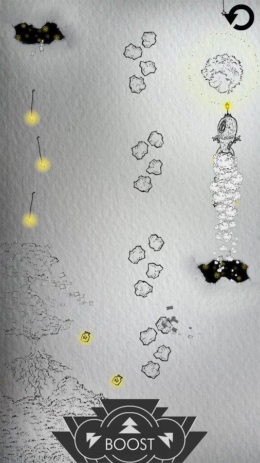 A clash is one of those games that combines simple but addictive gameplay and original graphics. Gameplay A clash quite simple, operating by means of the buttons of the rocket flight your task is to collect as many elements are on the level. Similar games on mobile devices there are so many, but none of them can compete with A clash in terms of graphics. Artist of the project were William John Evelyn is known for its unique style. In the end this game had a unique view of the paper world with a pencil drawing objects, and complements the overall picture of the colorful inserts. It is worth noting the presence of a detailed storyline to explore which you will be able in the passing game.