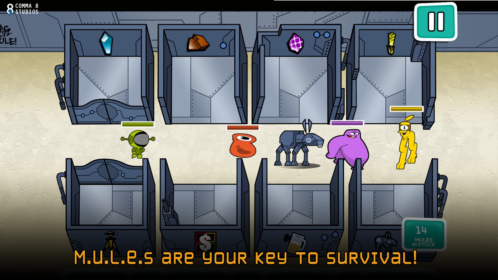 MULE - game first saw the light back in 1983 and since its inception has made a breakthrough in the gaming industry, combining in one project the elements of RTS, arcade and strategy. Event MULE develops in space, your character s fur, traveling around the universe searching the rich resources of the planet, when finding a suitable you need to colonize space body. But to win this is not enough, collecting resources, food, minerals, energy, cash your task is to create a better fur and send it to further space exploration.