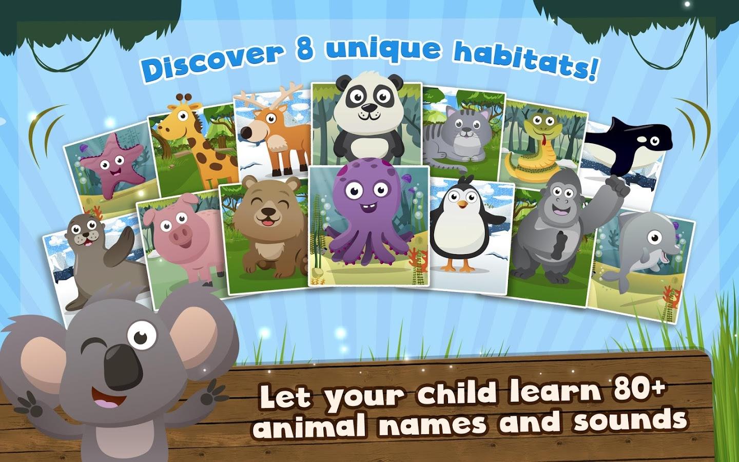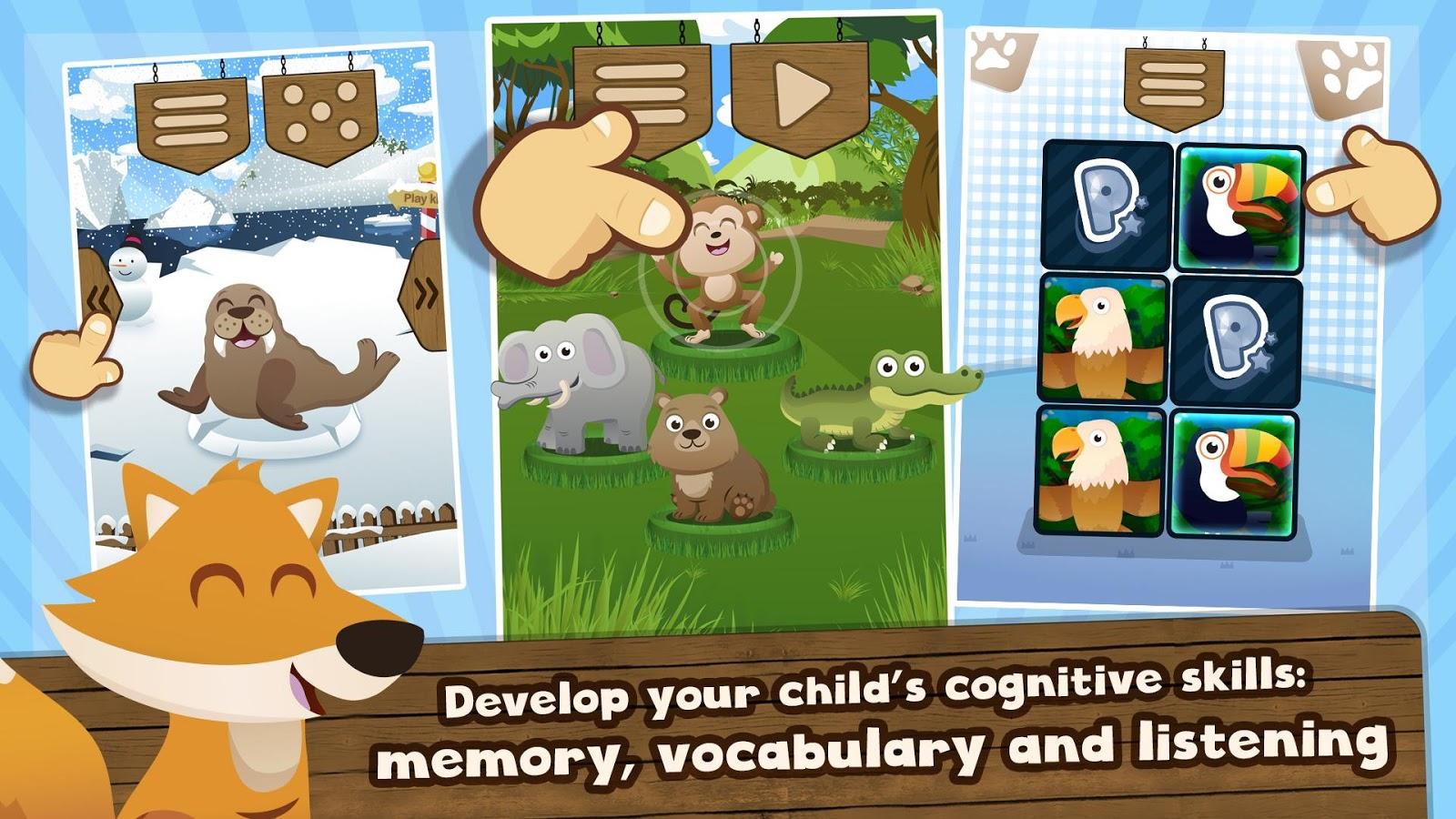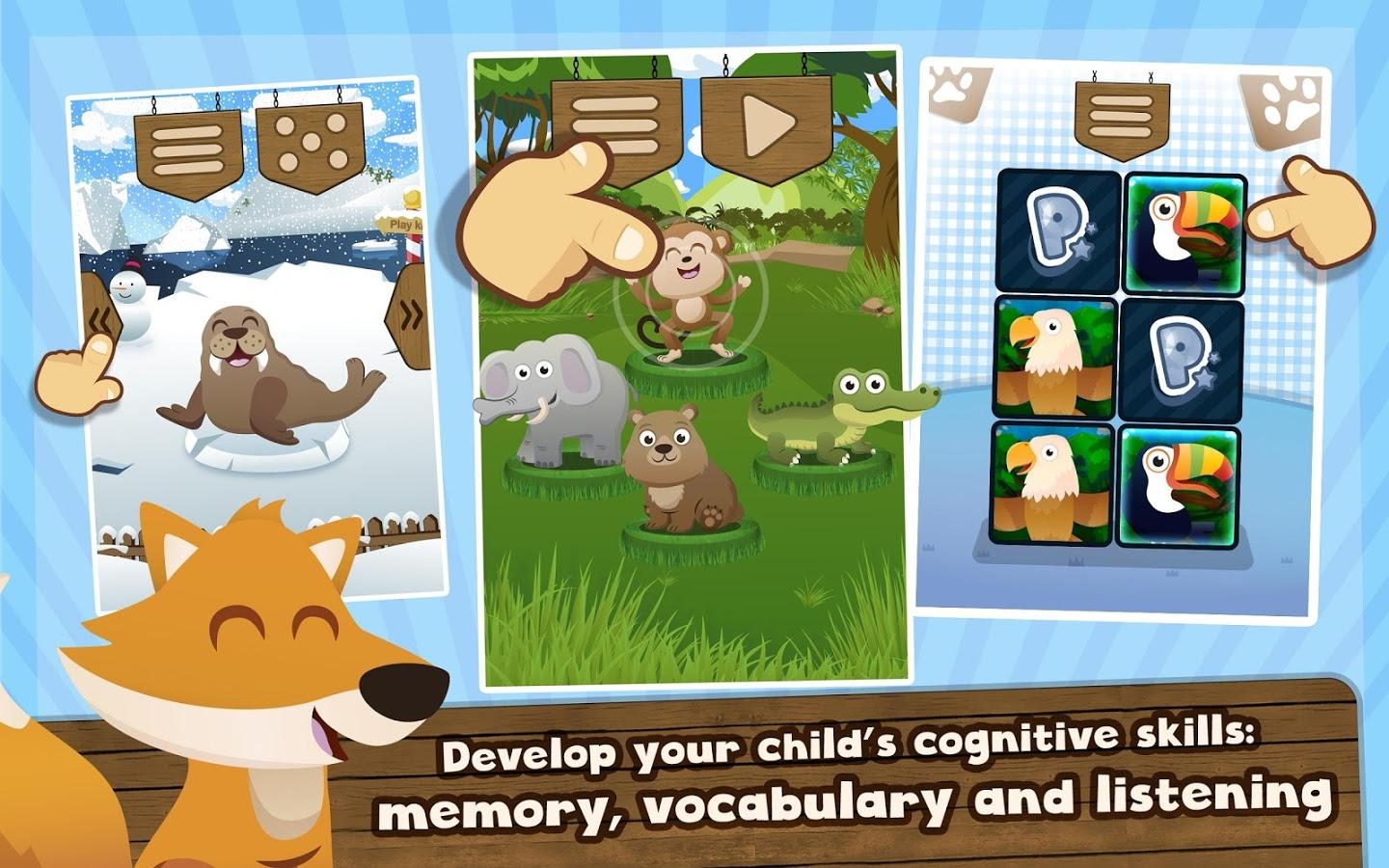 Animal Sounds – educational game for preschool children where they will learn about the different animals. This is a very exciting and fun game for children from one year and older where the child will listen and remember the sounds of different animals. To play this game will be able to even the smallest children, the screen shows the animal and the child listens to, what kind of noises does it, and sounds a animal name and its characteristics. This game will not allow your child to get bored, because it is more than 80 animals to learn. This game is suitable for older children, where they can change the language and learn the names of animals in another language.