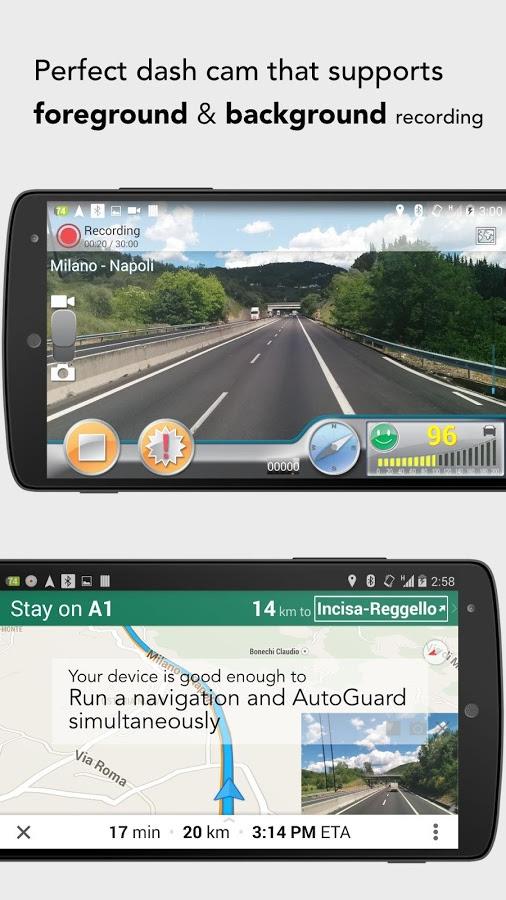AutoGuard Dash Cam - Blackbox - Not enough money for the Navigator? No problem, make your smartphone a real Navigator. Even more, you can make yourself a virtual assistant. Here you will find all you need, fine tuning of video recording starting time and ending with the size of the recorded files. Also, there are helper functions. For example, to speed dial where you can set the emergency number, whether calling loved ones or the emergency services. Another screen will register your movement speed. So you can always find out how quickly she moved.