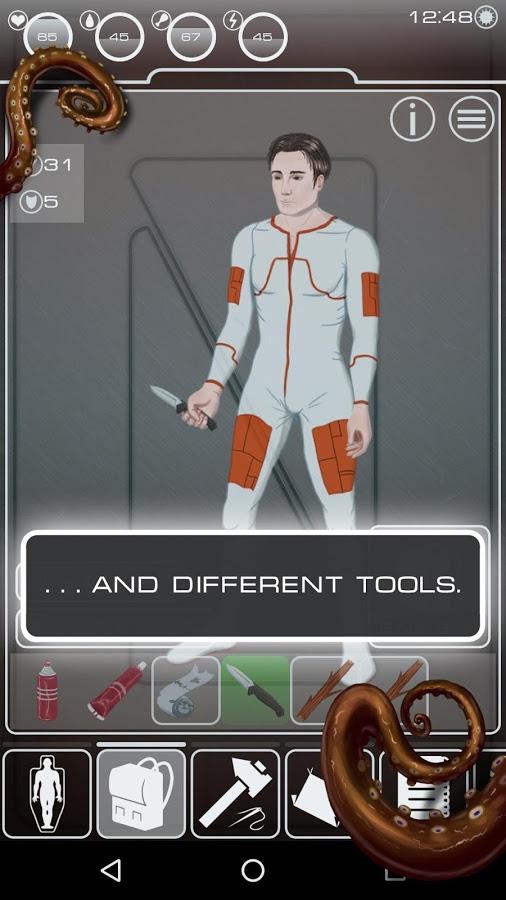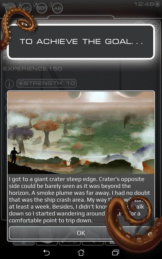 Planet Survival – an interactive game for Android with elements of crafting. This game takes you into the distant future where people have developed new technologies that allowed humanity to explore the vast galaxy to find a colony for their descendants. You volunteered to go on a long journey, but something went wrong and your spaceship crashed and fell on an unknown planet. Now your task will be to explore the planet and search for the remains of the destroyed vehicle to find escape capsule and return home. On your way you will meet a lot of different dangerous creatures that want to kill you, join with them in unequal fighting not to let the enemies destroy you. The game has several options for the development of the plot and the ending all depends on what choice you will make. Play and improve your character as the game progresses.