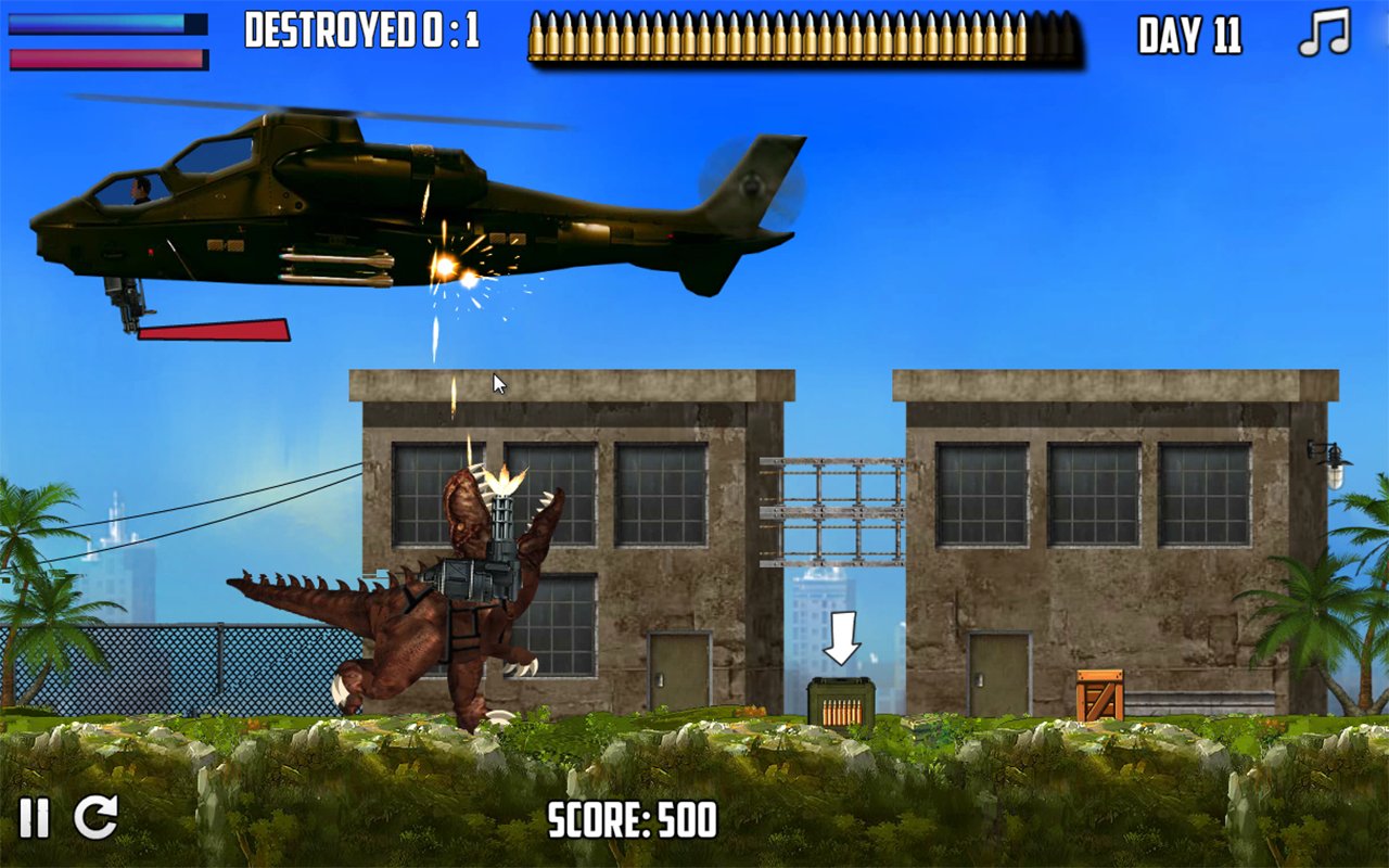 Mexico Rex – the T. Rex at the time, were the most ruthless predators who were standing on the very top of the food chain. They feared all whom he could reach. The game tells the story of fighting a Dinosaur who is equipped with the latest military equipment, this time he will destroy Mexico. Everything that gets in his way will be destroyed or destroyed. Moving through civilian areas, destroying homes, eaten people and bring chaos to the peaceful life of Mexico.