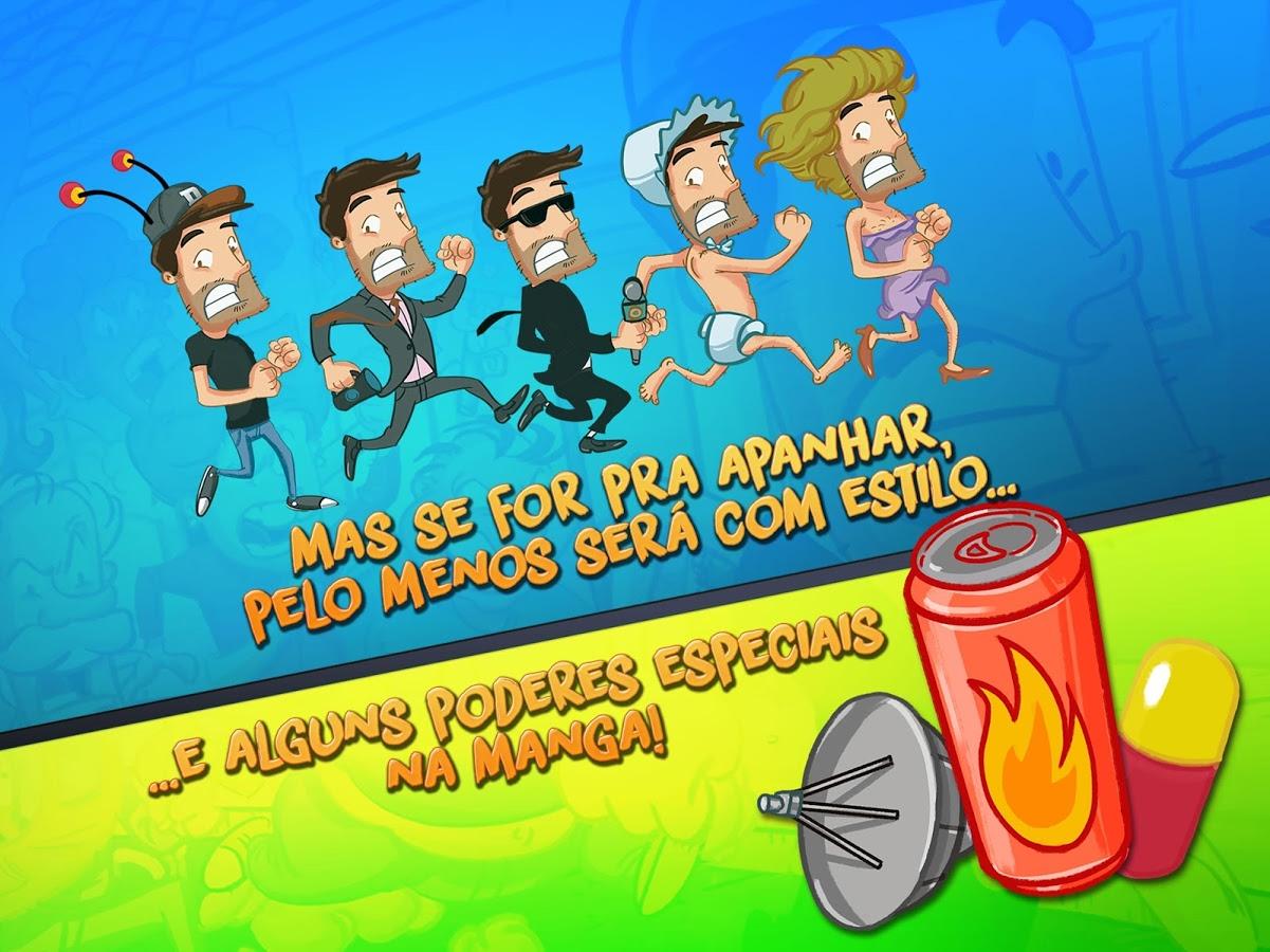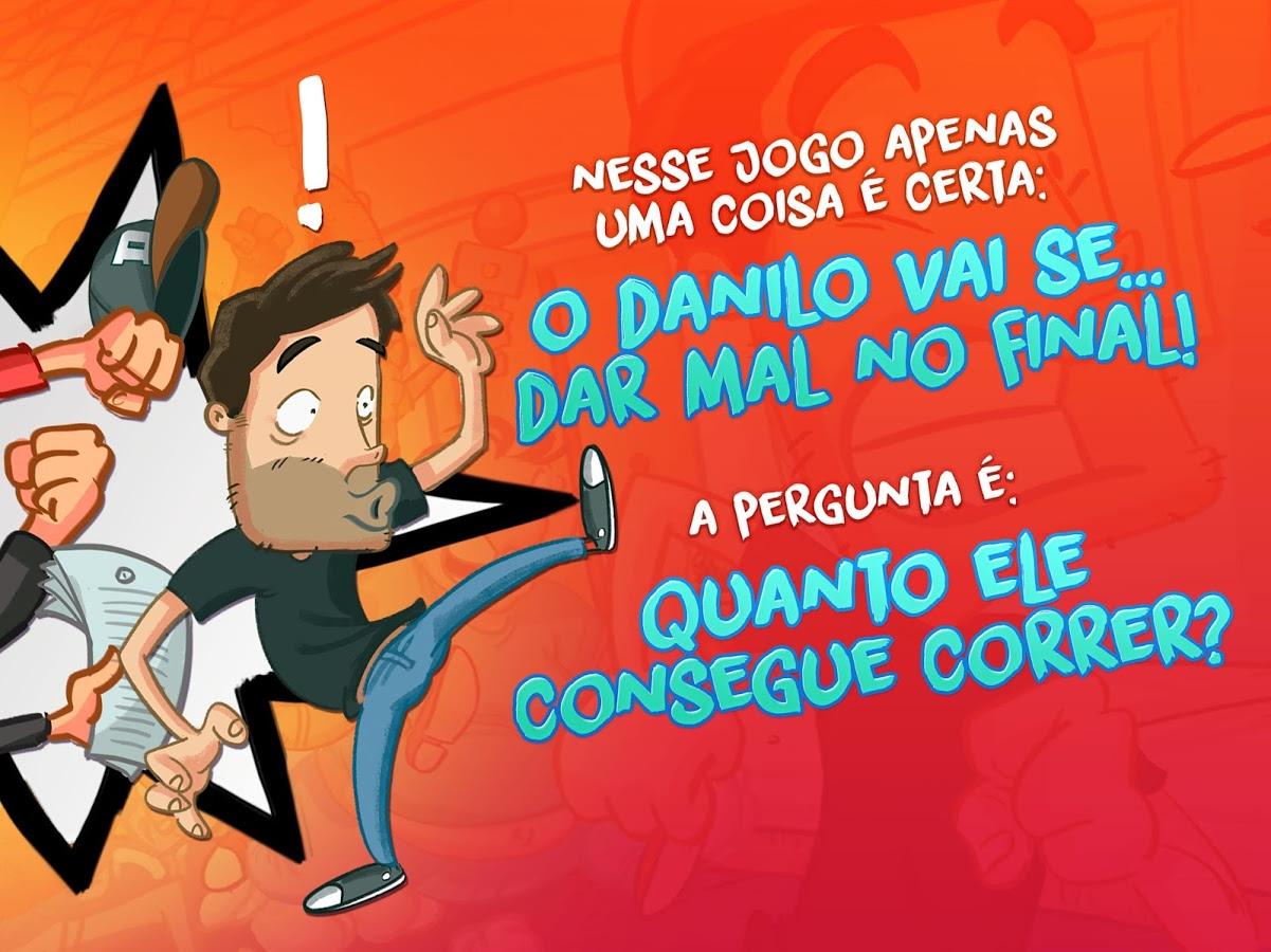 The protagonist of the new horizontal Rahner called Corre, Danilo, Corre! he made a small name Danilo Gentili. As you know the jokes are funny, not funny, witty, silly, and sometimes even cruel. So now our hero is absolutely can t control himself and makes jokes left and right, and in most cases very badly. And then one fine day the patience of the citizens was exhausted and they decided to teach a good sense of humor, good subjects to him. Danilo, as most people like a warehouse, not very daring, so I decided just to run away. It is worth noting that the runner he was mediocre, but the power fear gave him speed. Because it will make running away from an angry mob.