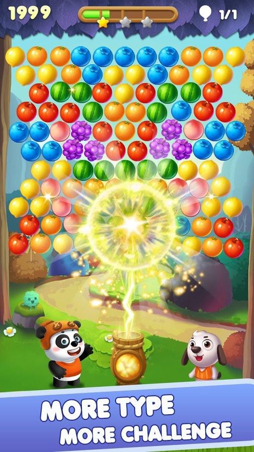 Bubble Panda Rescue is a fascinating game on Android, with exploding fruit and bright graphics. In this game you will help the Panda Pipi, to blow up the juicy fruits and thus to pave the way to his beloved Lala. Nevidannye forces have separated the two lovers and their fate be in your hands. Shoot different fruits at the bunch of them upstairs and create long chains of exploding fruit. Overcome the levels in the shortest number of moves and approach the cherished goal. In this game you will meet charming characters such as Panda, Bunny and puppy and will enjoy playing music. Go through more than 100 levels and set your highscore in this game.