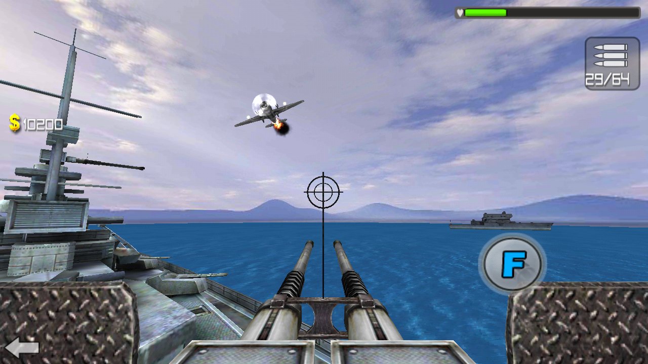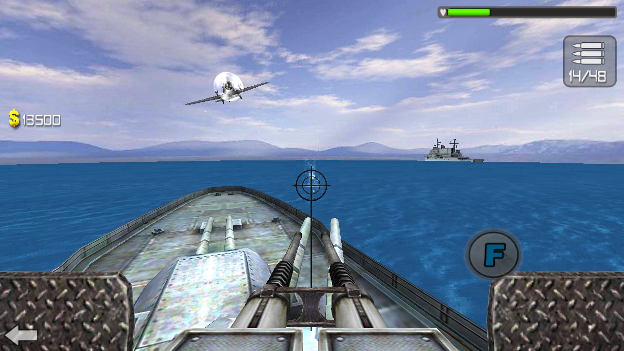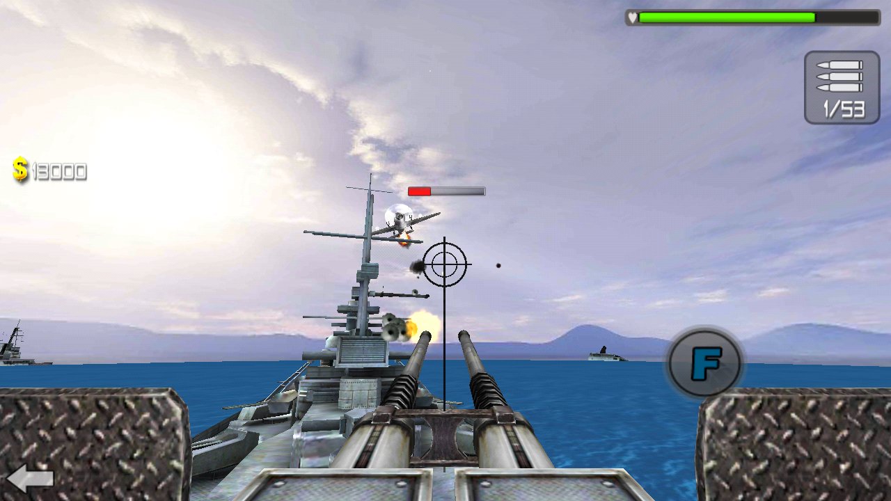 Sea Battle 3D sea battle on Android, where you will destroy the enemy forces. This game takes you in 1941, where the Japanese Imperial fleet of 400 aircraft attacked the US military base at pearl Harbor. In this game you are waiting for a fierce and swift battle for life and freedom. Control a huge battleship and fire of the numerous guns and machine guns, trying to knock as many enemy planes. Continuously fire at the enemy and do not let the enemy destroy your base. Game players will appreciate the dynamic battles, good graphics, where you can have fun from the heart, destroying the enemy aircraft. Earn enough points for each downed plane and buy a lot of ammunition.