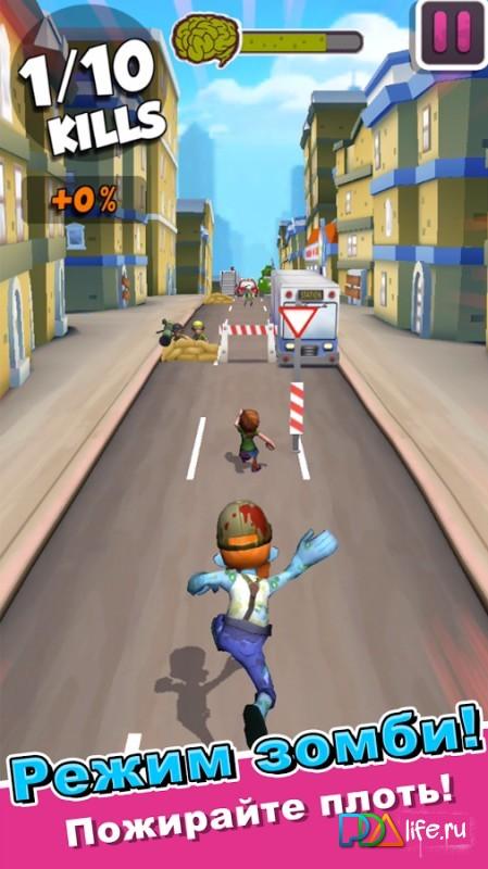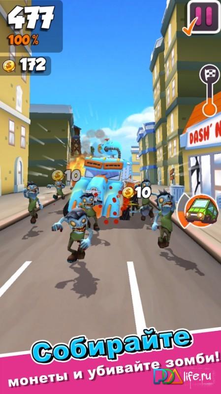 Undead City Run - classic vertical runner, with a familiar game mechanics, run forward, jump over obstacles, collect coins and bonuses, avoid collision with enemies. The game s plot as well is not original, the city was struck by a zombie plague and only a few were able to survive, including you. It would seem nothing new, but it is not, the game creators have implemented a lot of interesting features. For example, use your own van of death, if you get tired of running, then get behind the wheel of this unit and mercilessly kill the brain-eaters, of course the van can be improved and developed. Or you can go a completely different way and try your hand as a walking dead man, so the only choice for you. In the rest of the Undead City Run the usual arcade game.