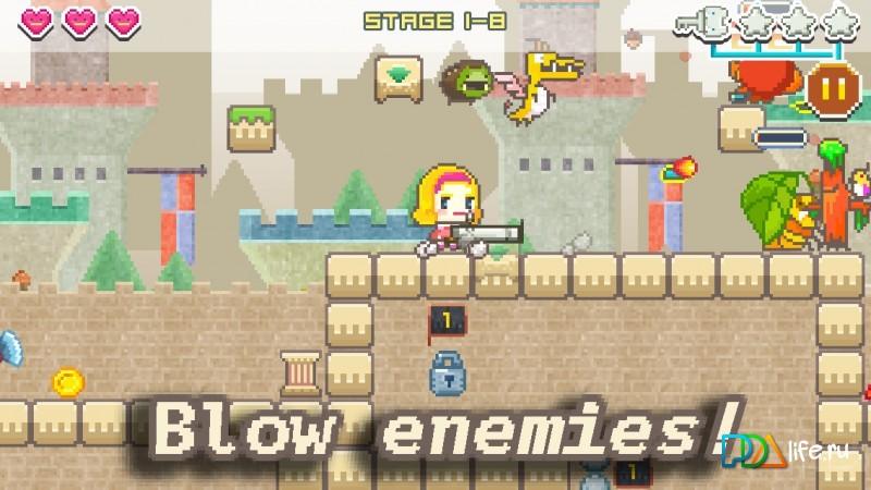Brave Rascals is a classic platform game made in retro style. The gameplay is in full compliance with the laws of the genre, run, jump, shoot, collect prizes, stars, fight bosses, improve your character, upgrade your weapons. The storyline is actually in all games of this direction is rather superficial and anything about what is happening we know little. But the game world is crafted wonderfully, with impressive levels with intricate structures, platforms, traps, corridors, shafts, staircases, dozens of enemies all this gives the game a unique variety. Everything else is Brave Rascals can be done at two levels of difficulty for fans to gather bonuses and shoot in a relaxed mode suitable level for beginners, but the mode of the professional will require not only skill, but experience.