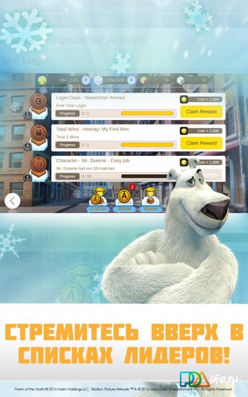 Arctic Dash: Norm of the North is a multiplayer online game, with horizontal scrolling, based on the eponymous film in which you will be playing for one of the characters try to come to the finish line first. But remember that all race participants are allowed not only to escape but to use all sorts of tricks to throw icicles, bottles and other objects at a distance has no place sporting generosity, there is only the desire to win, whatever it was.