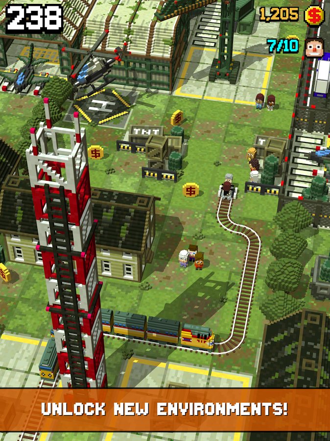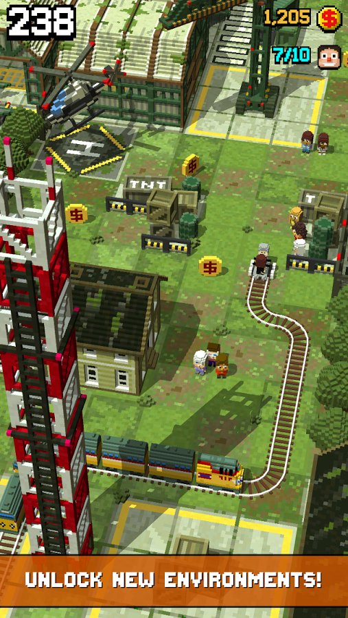Tracky Train train arcade game where the developers apparently borrowed the idea of the graphical solution in the popular game called Crossy Road. Train in Tracky all the same low poly object, creating a unique pseudo - three-dimensional world. However, the goal is quite different. Your task is to build railroad tracks, so not to damage occurring in the way buildings, homes, trees, people. And this should be done as accurately and quickly, because the tracks should a train, so in which you simply do not have.