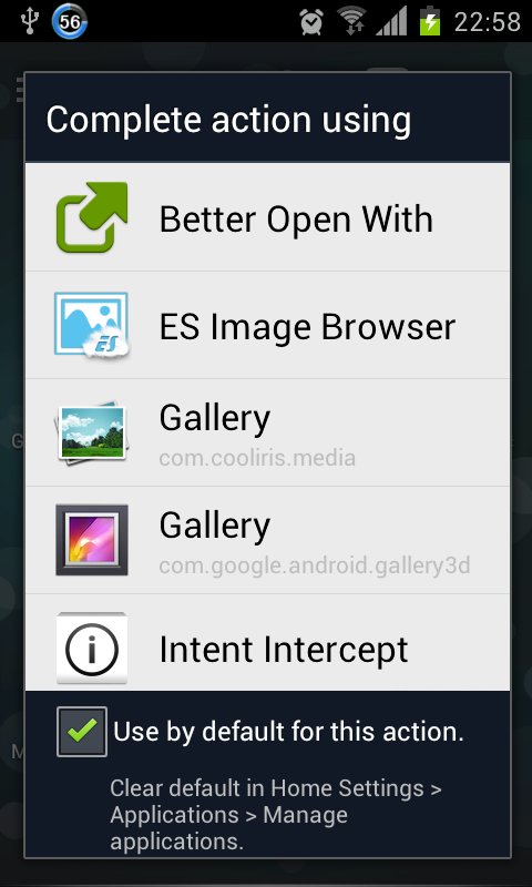 Better Open With - Simplify your choice of default application. With this app, you will be much easier to handle with your auto start. Don t need to choose using which application to run a particular file. You can choose the default app, and even with the addition of new programs, nothing will change. Also, you can set a delay time before running the application.