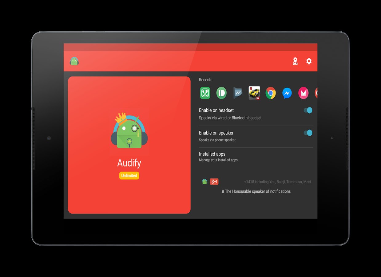 Audify Notification Reader - a Very interesting alert system for your smartphone. With this app you literally will be able to improve the standard notification system. The convenience of this app in its precise configuration you can always disable the wrong app, and notifications will be sent only for important events. Also, you can easily connect this app to the Bluetooth in your car, and get sound notifications directly from him.