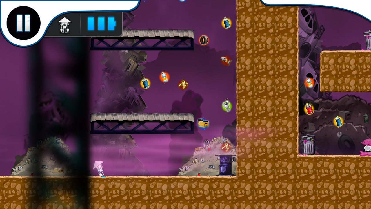 MOP: Operation Cleanup - fun platformer, the plot of which develops in the distant future. As a result of his life of humanity is simply bombarded the planet with debris, the quantity of waste is growing every day and has long been incident, an environmental disaster was gaining momentum. In especially polluted parts began to emerge a new life form, extremely aggressive. One of the research institutes in the result of years of research finally unveiled the project is able to change the situation, so was born the waste robot. It is the role of the hero you have to play. Traveling on locations collect all available debris, defeat monsters and try to get to the processing plant.