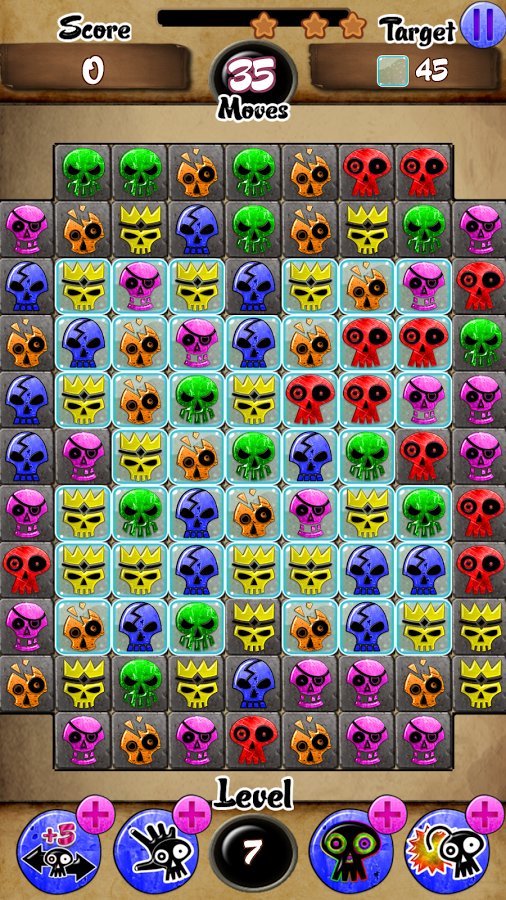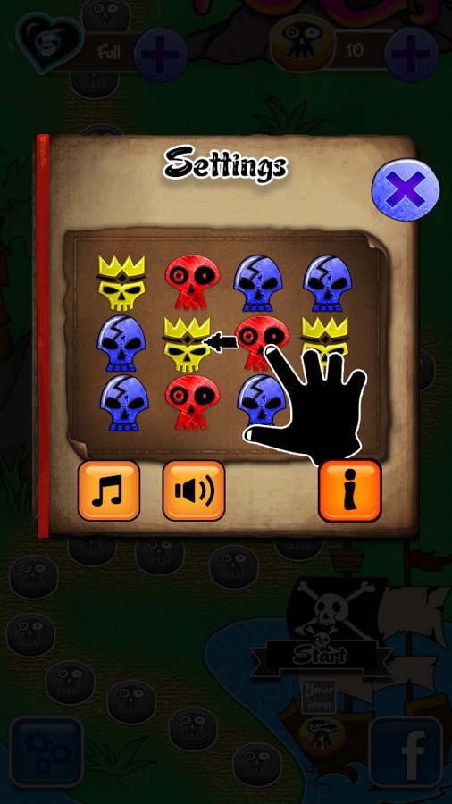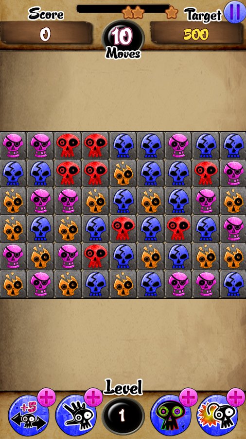 Skull Candy Match – the Game in three in a row on the pirate theme. Long since all the people were attracted by stories of untold treasures. Many were sent to their assistance, but they waited for death. Centuries the skull was saved on a remote island and they became so numerous that they can be used to set various traps on the way to put. In the game you need to build the shards of one type in one line, then they disappear. Make your route around the island where pirates still went and looked for a place for the burial of a huge number of untold wealth of treasure.